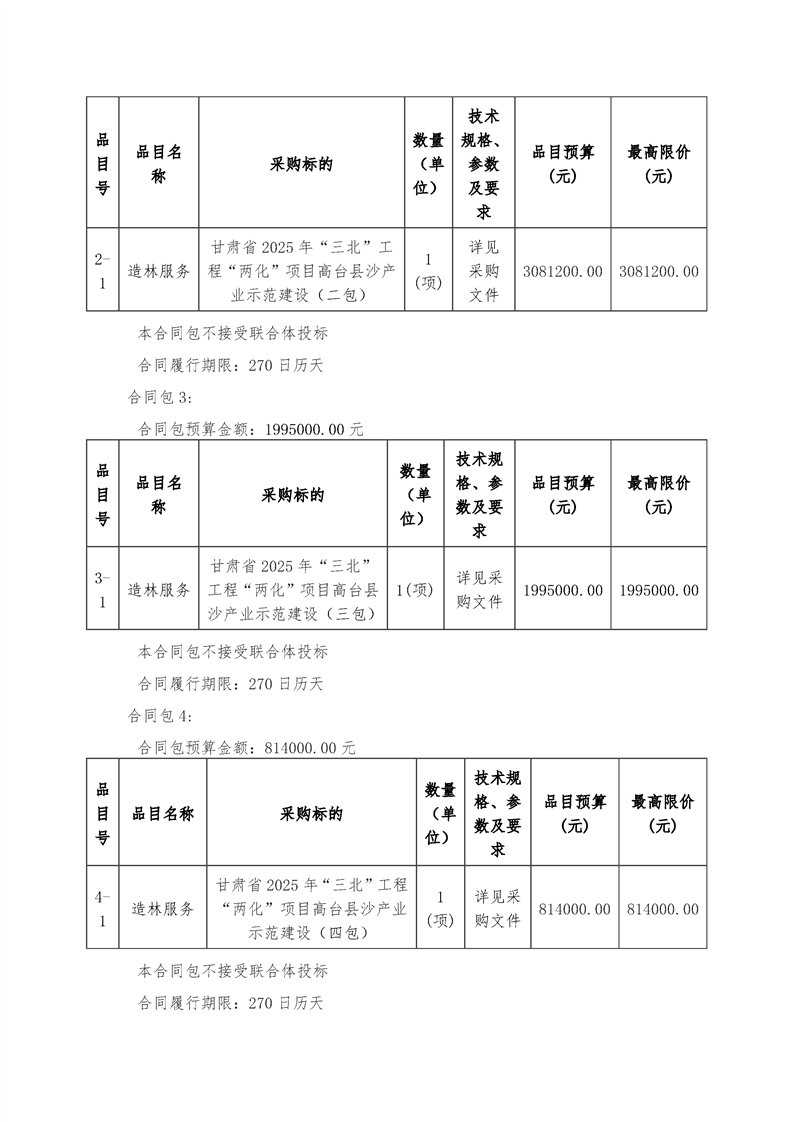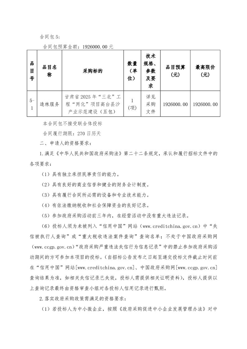 甘肃省2025年“三北”工程“两化”项目高台县沙产业示范建设(二次)公开招标公告[采购/资审公告]