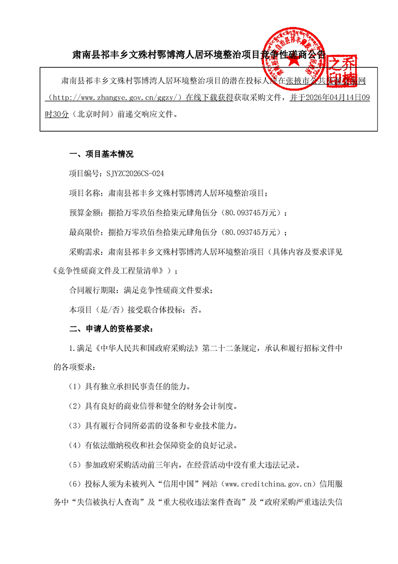 肃南县祁丰乡文殊村鄂博湾人居环境整治项目竞争性磋商公告[采购/资审公告]