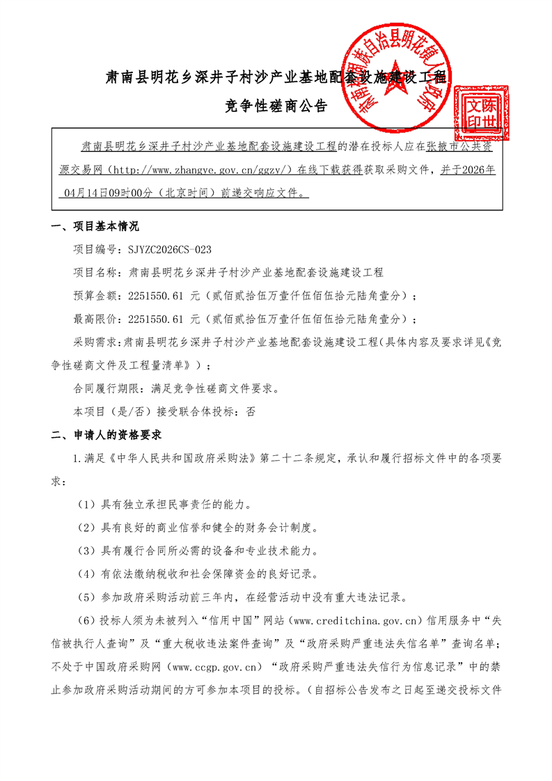 肃南县明花乡深井子村沙产业基地配套设施建设工程[采购/资审公告]