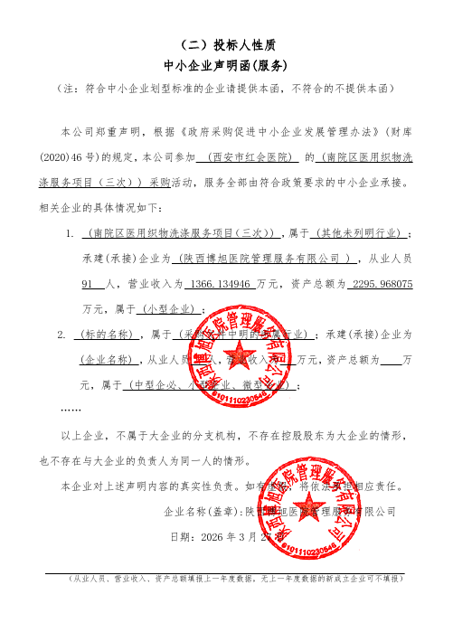 合同包*(西安市红会医院南院区医用织物洗涤服务项目(三次)):