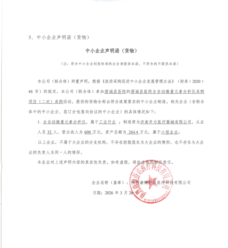 澄城县医院全自动微量元素分析仪采购项目(二次)成交结果公告
