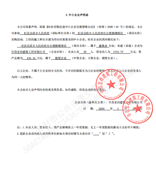 杞县宗店乡人民政府办公楼修缮项目结果公告