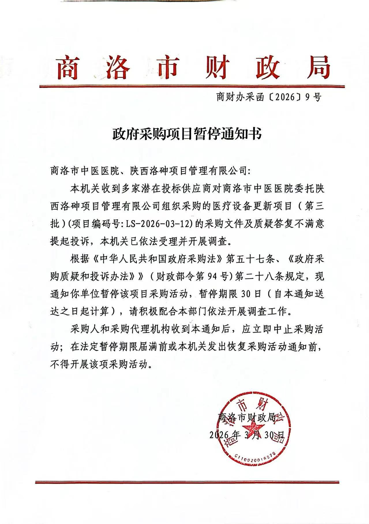 商洛市中医医院医疗设备更新项目(第三批)采购更正公告(第一次)