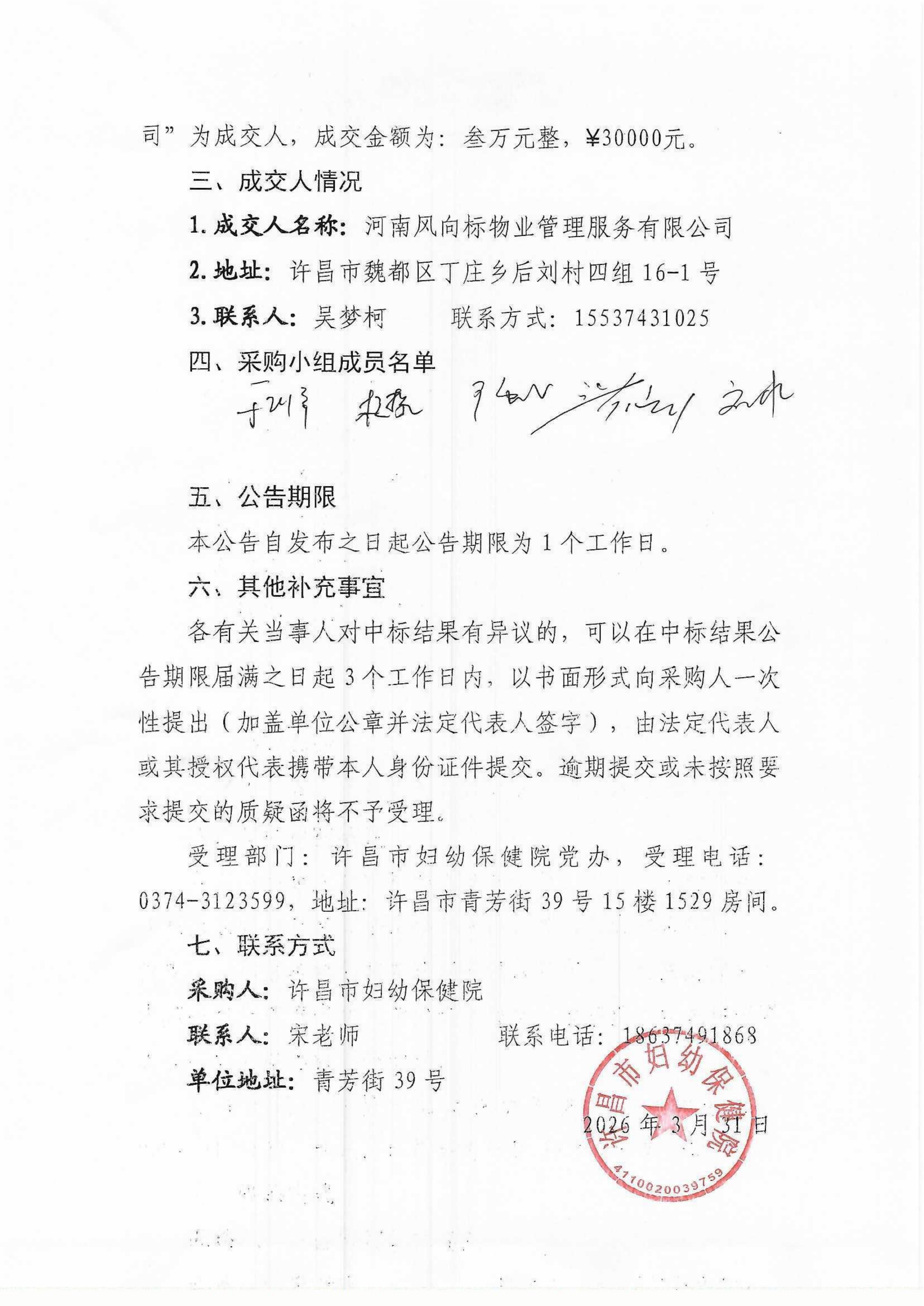 许昌市妇幼保健院“绿植花卉租赁”项目采购结果公告