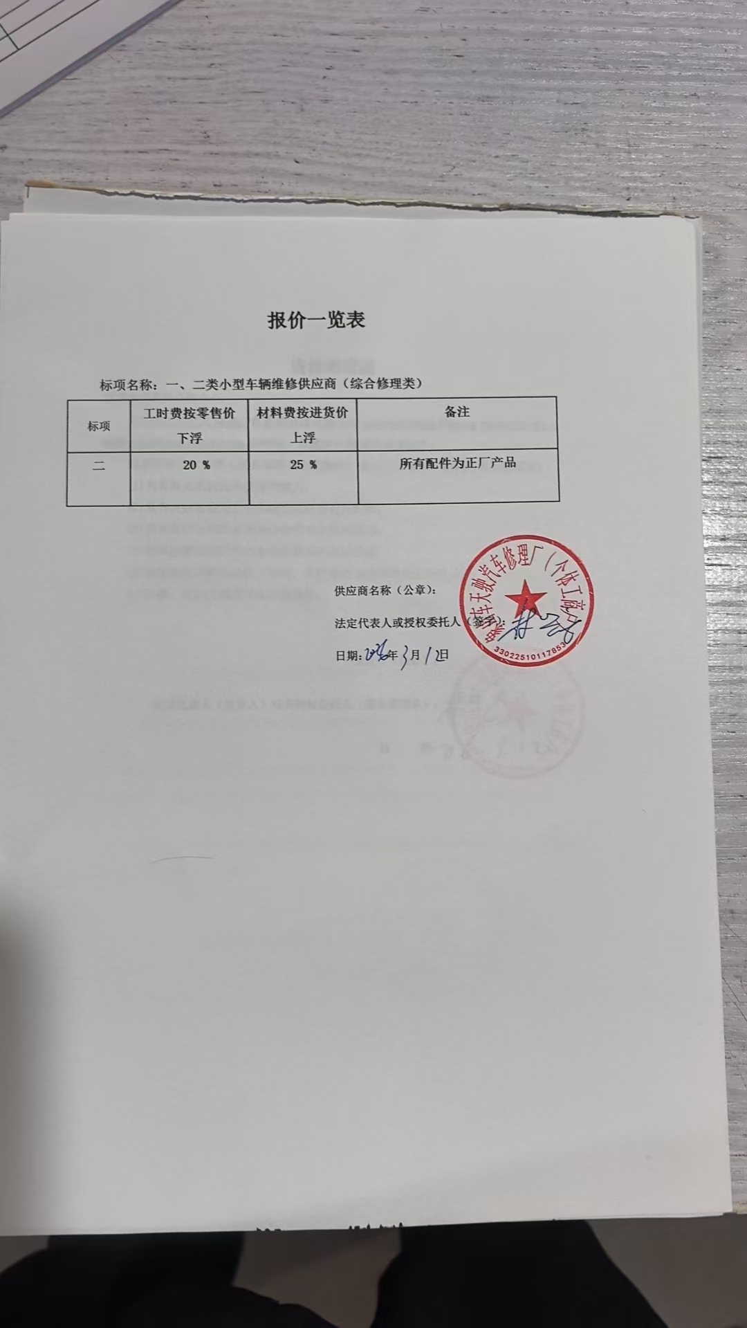 、二类小型车辆维修供应商(综合修理类)