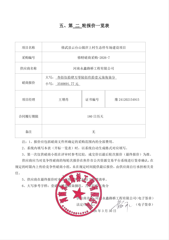 | *、采购项目名称:修武县云台山镇岸上村生态停车场建设项目 | |||||||||||||||||||||||||||||||