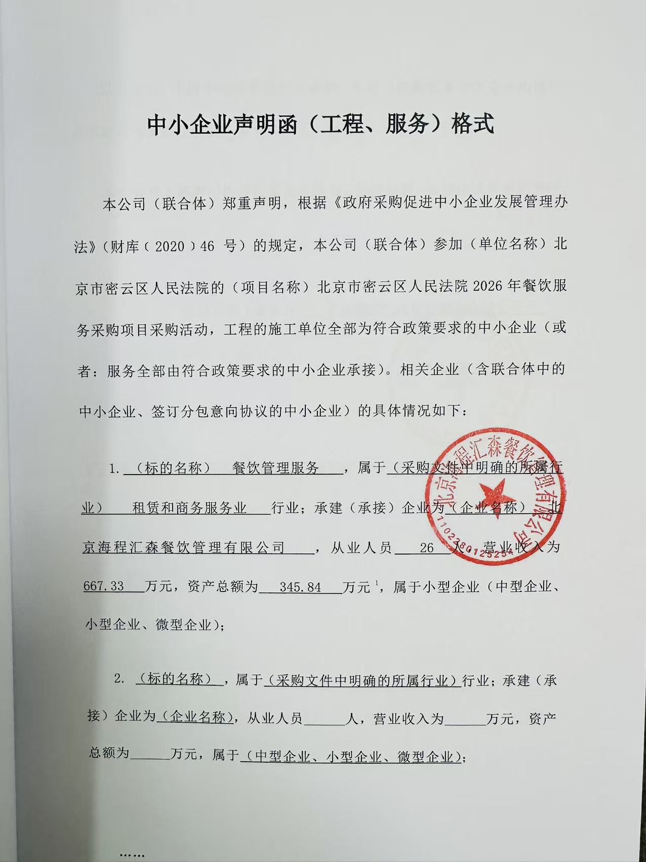 [磋商]北京市密云区人民法院2026年餐饮服务采购项目成交结果公告