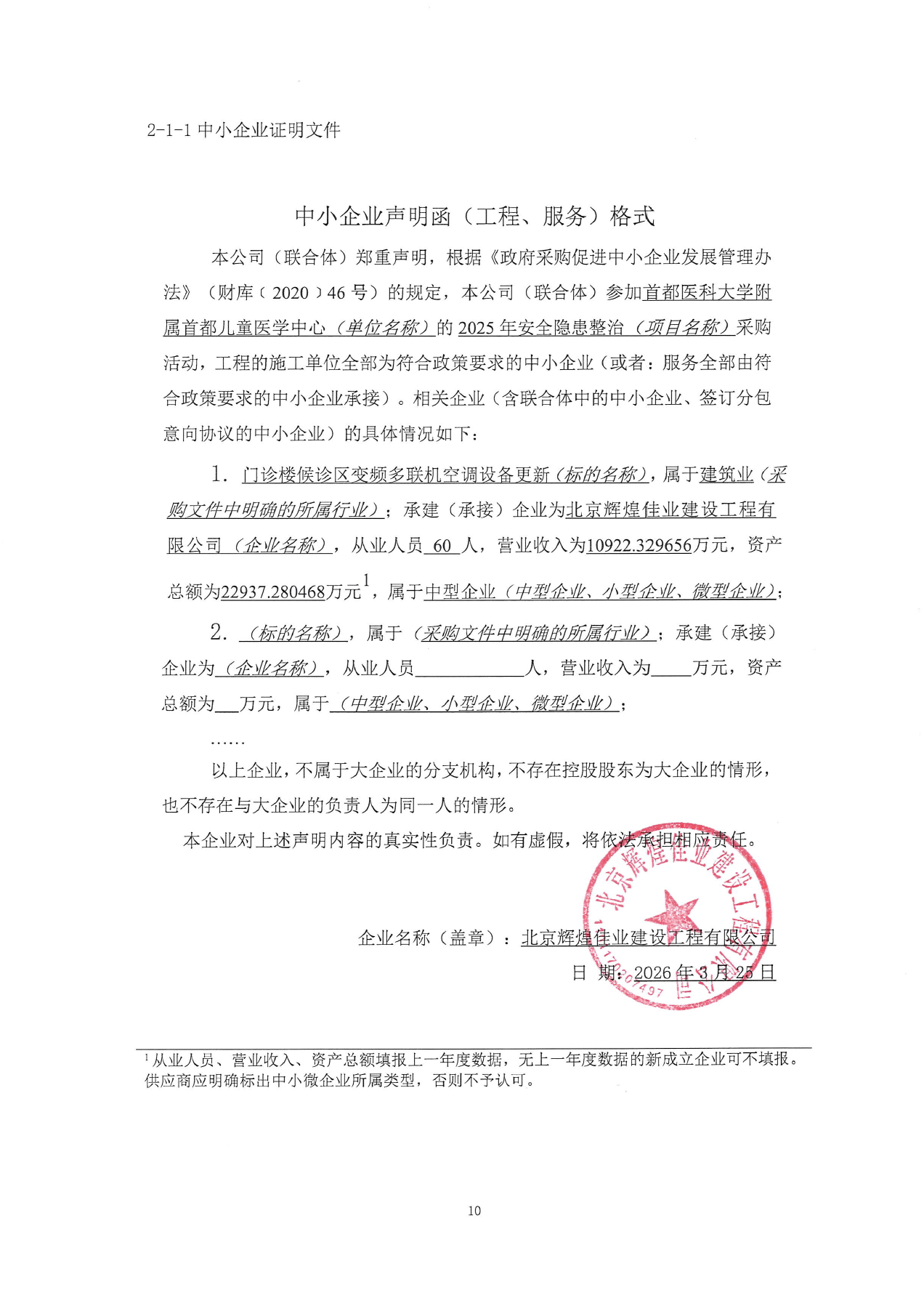 | 北京辉煌佳业建设工程有限公司 | * | **.******万元 | **.******万元 | 详见磋商文件。 |