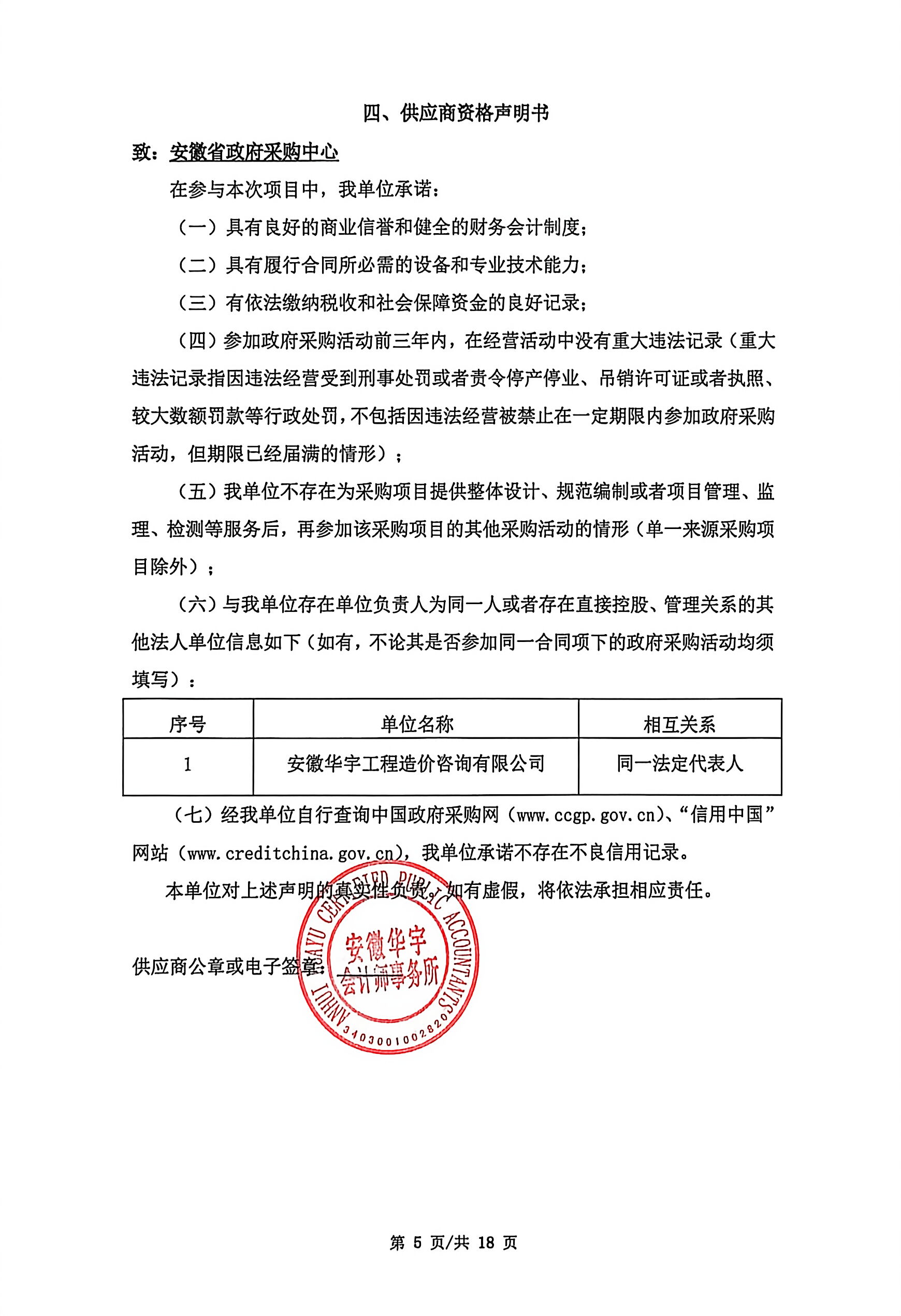 供应商名称:安徽华宇会计师事务所