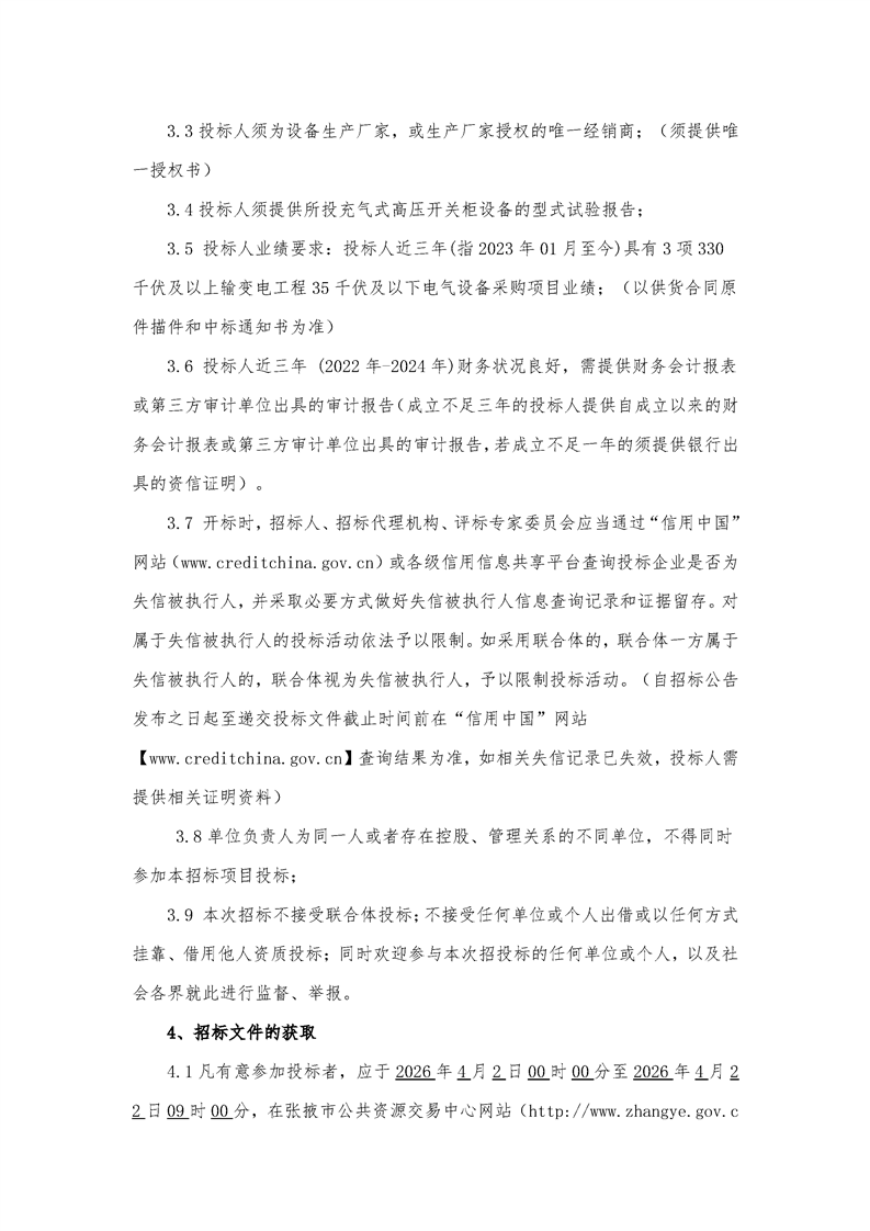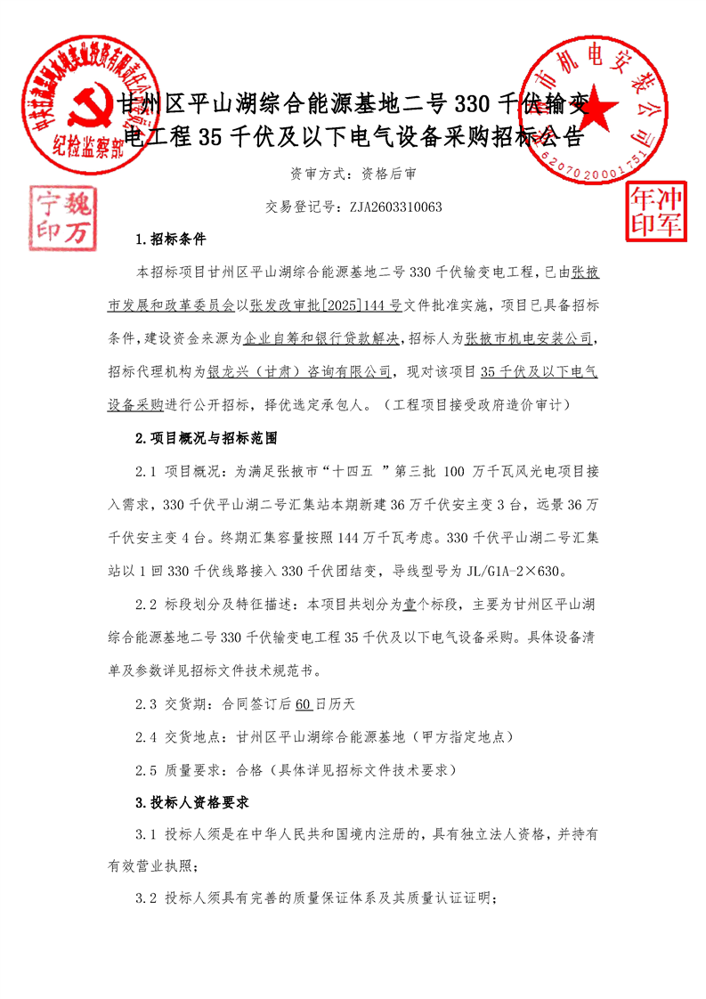 甘州区平山湖综合能源基地二号330千伏输变电工程35千伏及以下电气设备采购[招标/资审公告]