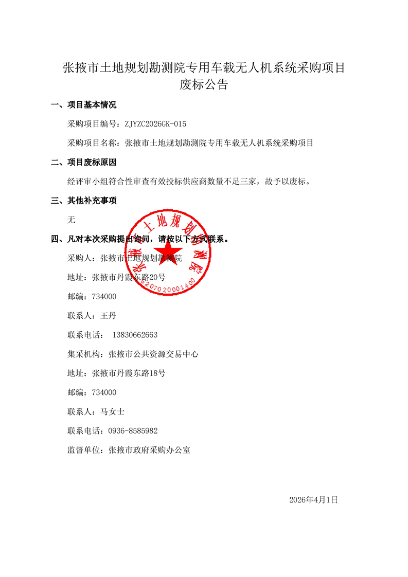 张掖市土地规划勘测院专用车载无人机系统采购项目废标公告{type}