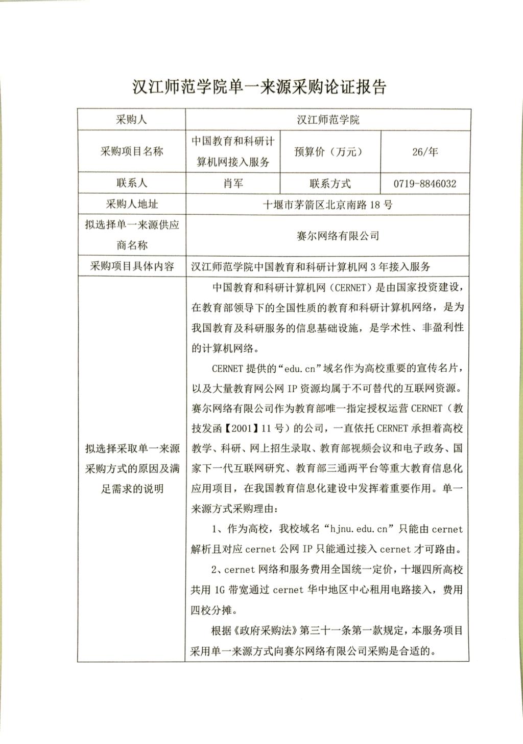 *.项目名称:汉江师范学院****年教育和科研计算机网接入服务采购项目