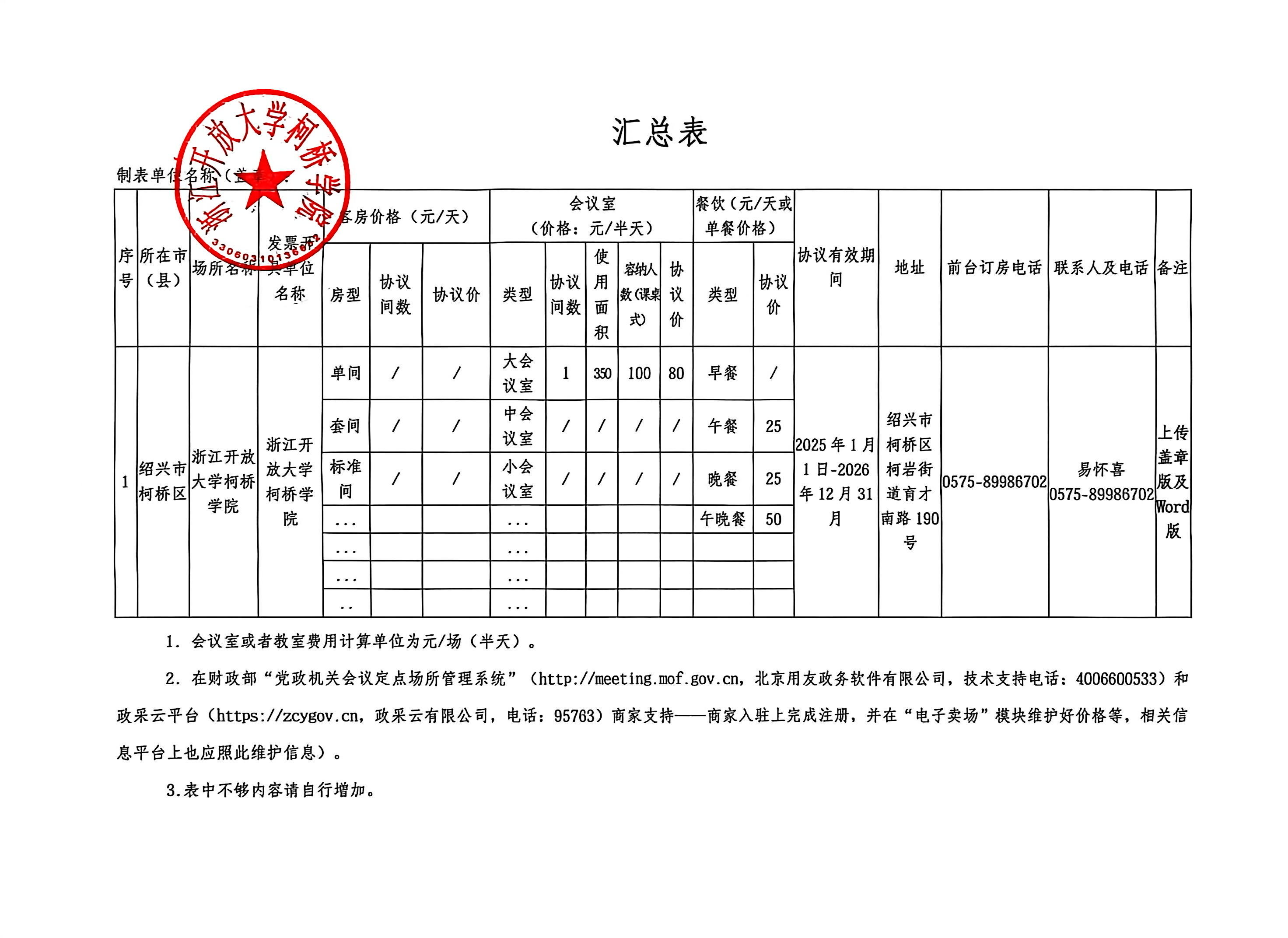 浙江开放大学柯桥学院入围2025-2026年度绍兴市会议服务开放式框架协议采购项目的结果公告