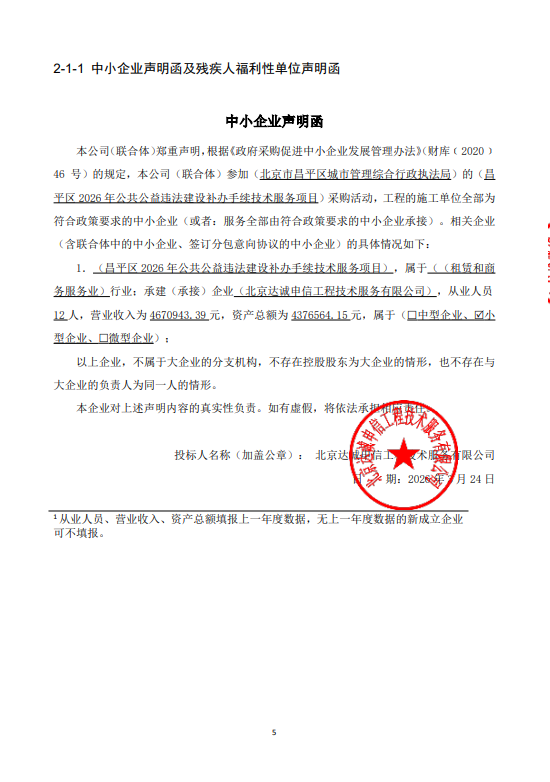 | 北京达诚申信工程技术服务有限公司 | 北京市昌平区怀昌路兴寿段*号院**号楼**至*层***内*层*** | ****************** | ****.****** 万元 | 评审总得分(综合评分法): **.** 分 |