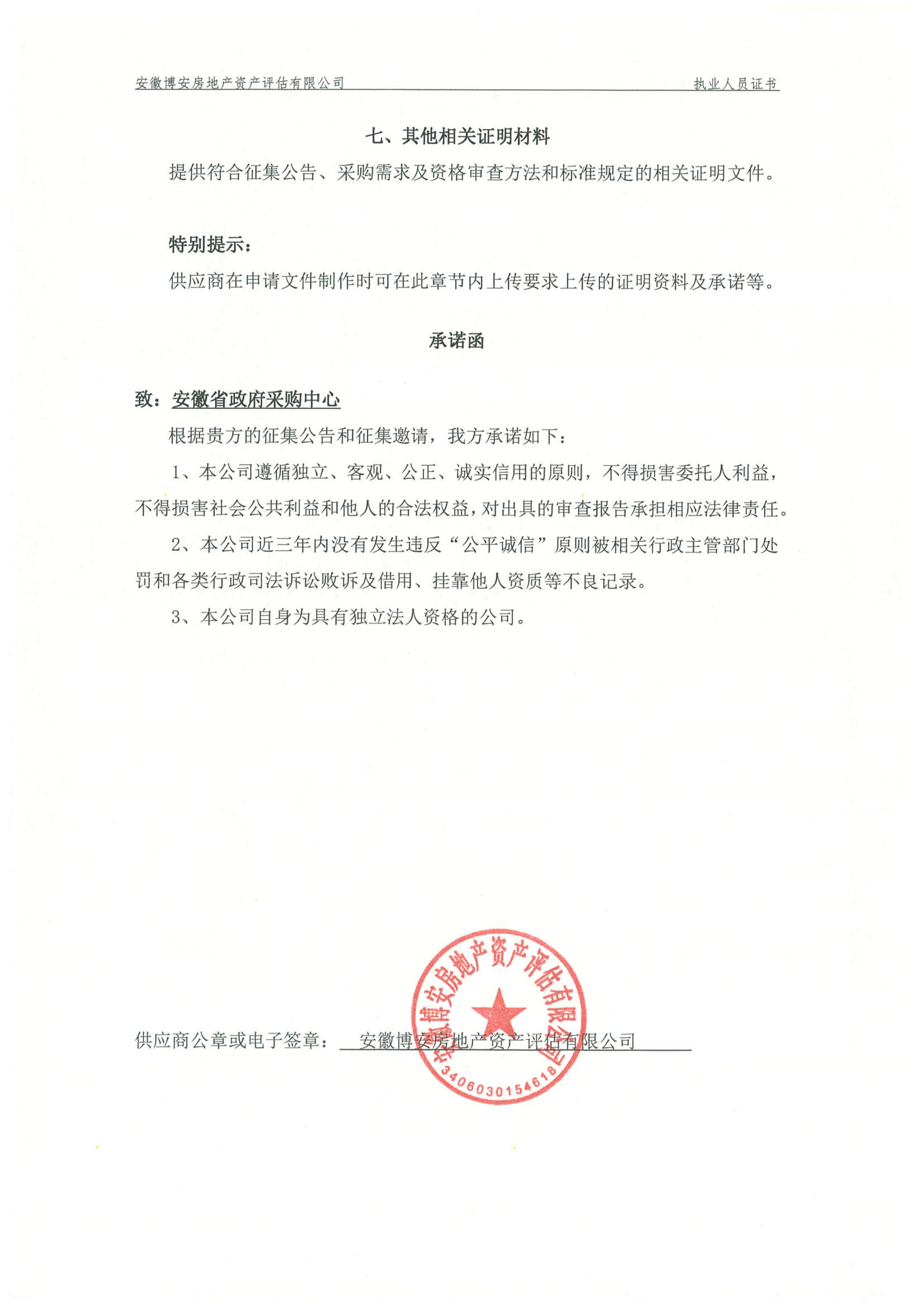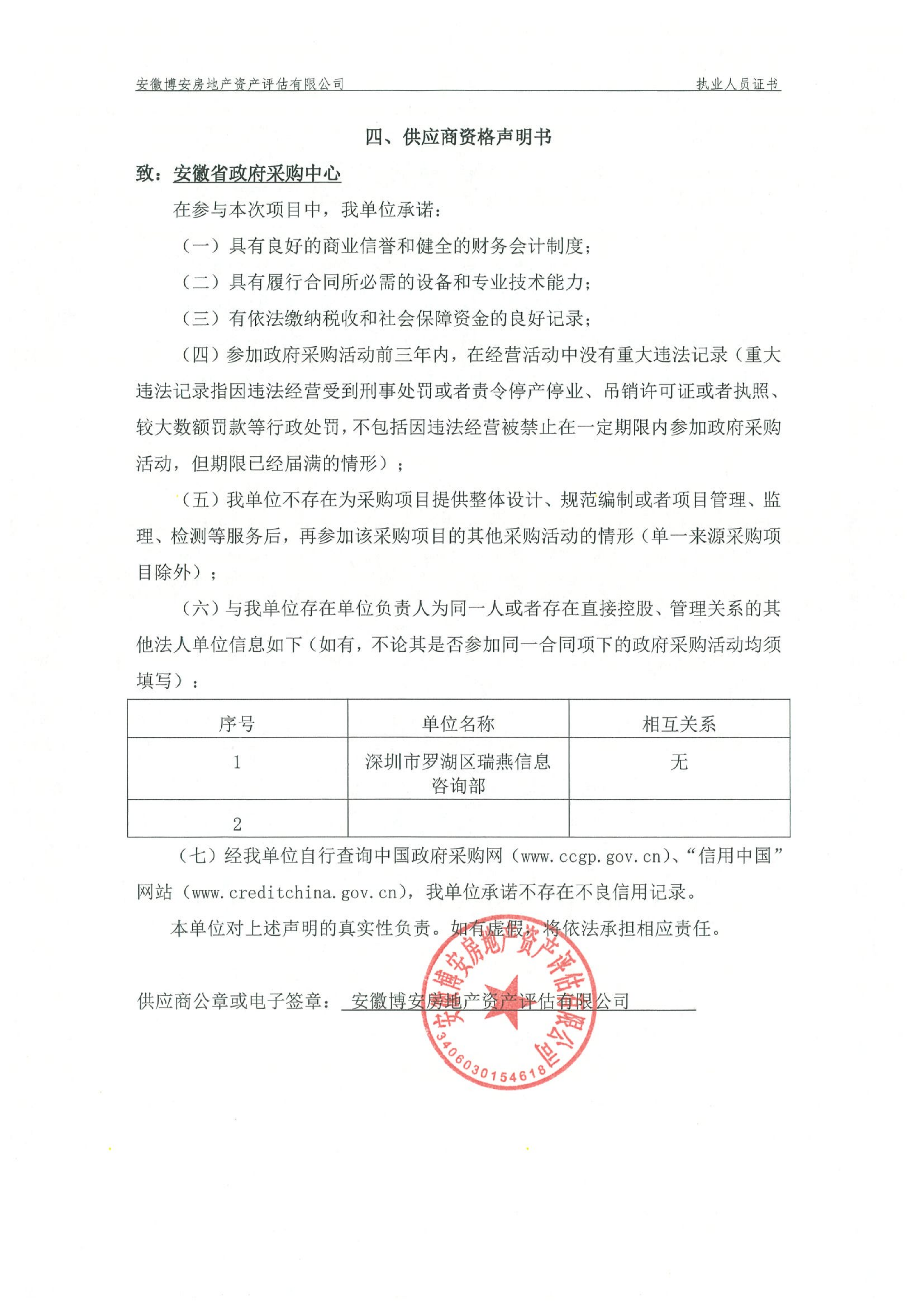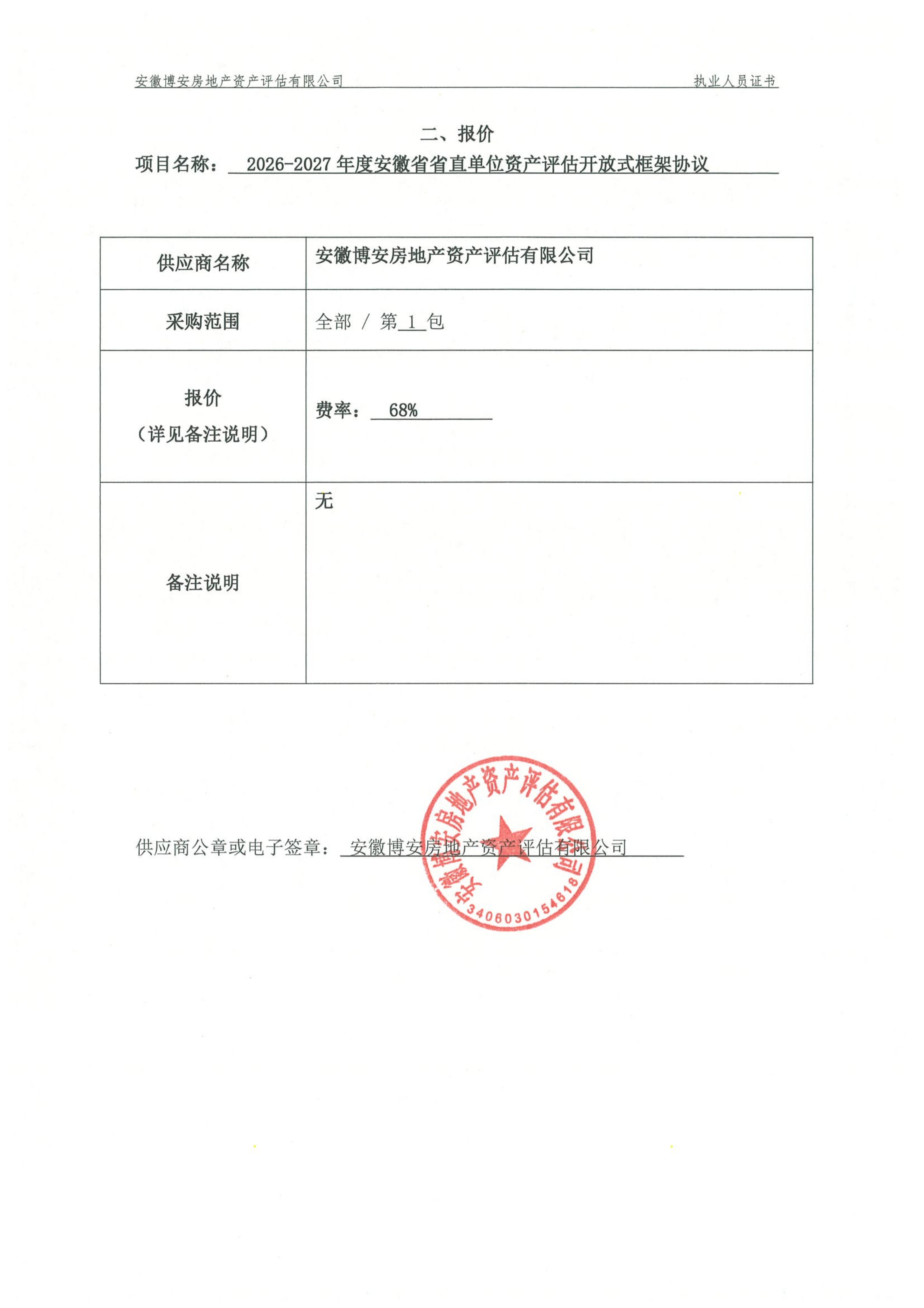供应商名称:安徽博安房地产资产评估有限公司