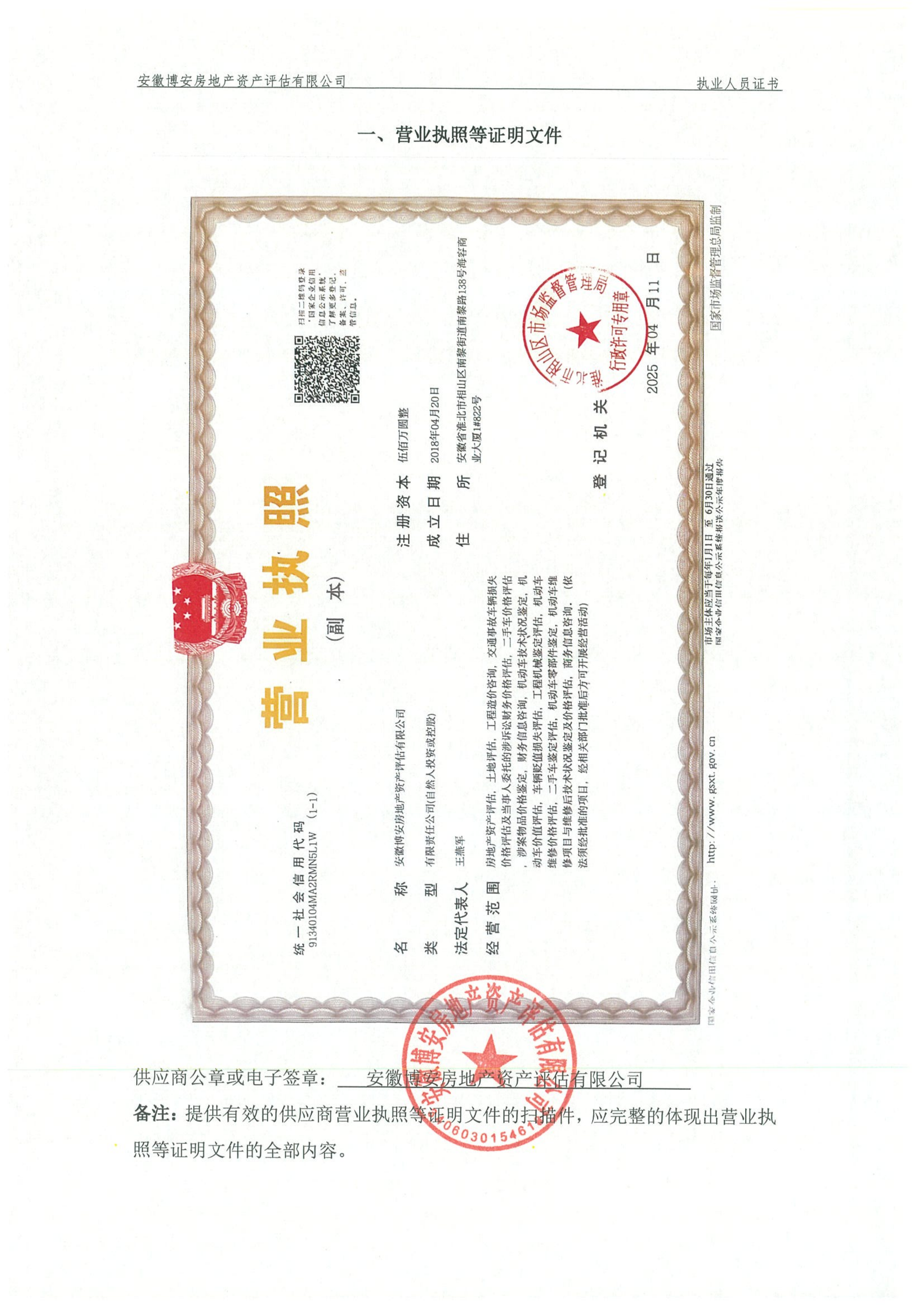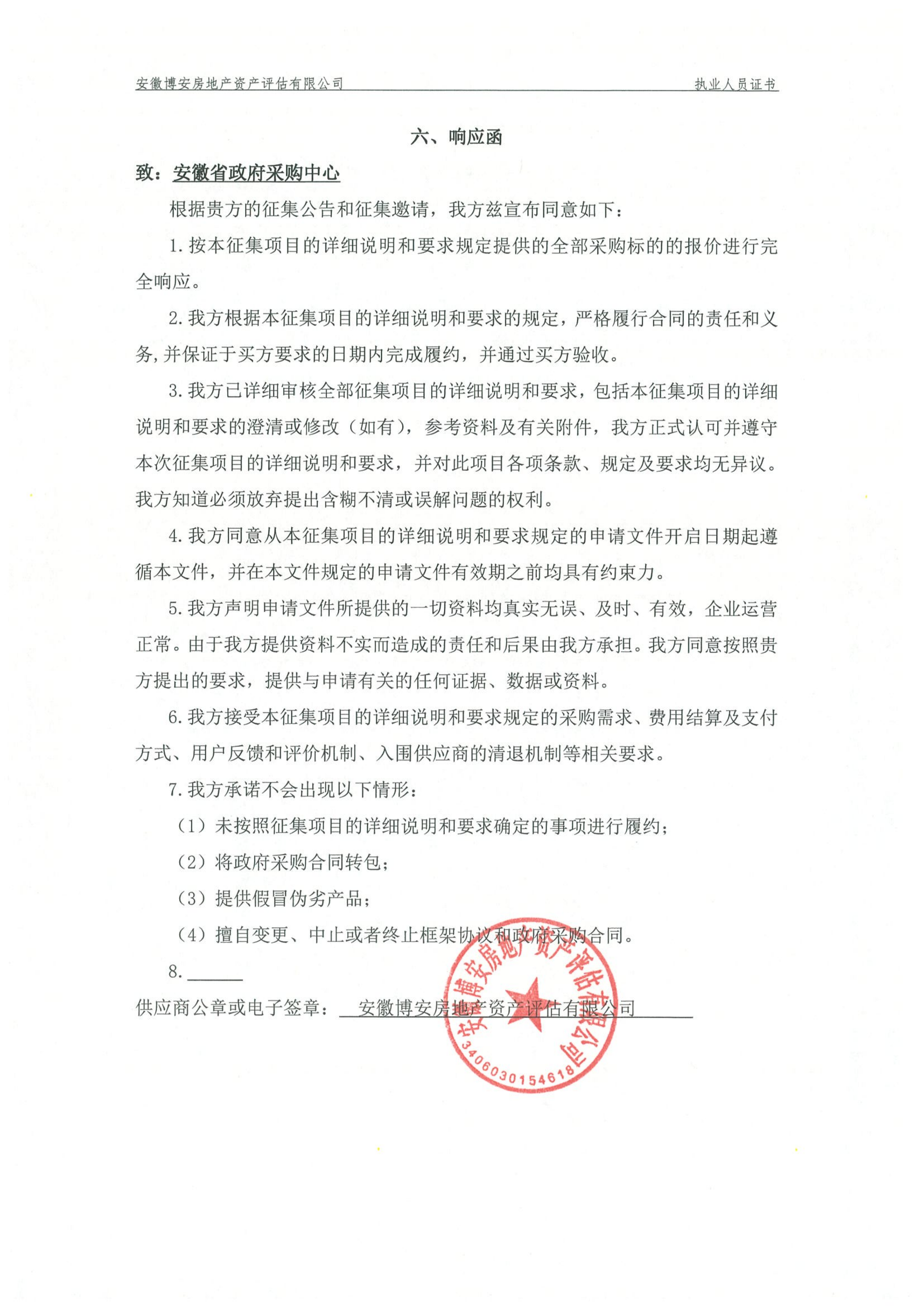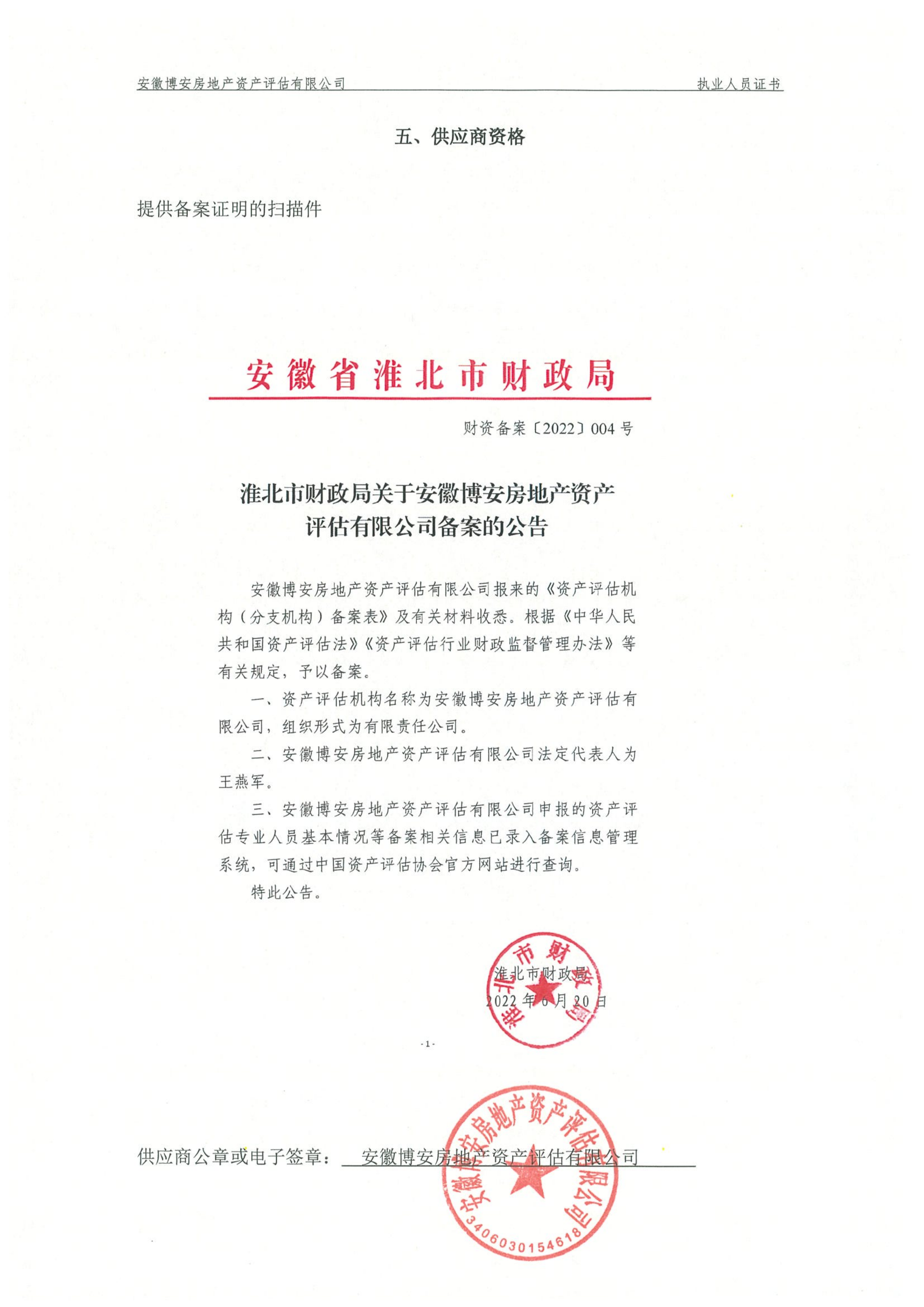 供应商名称:安徽博安房地产资产评估有限公司