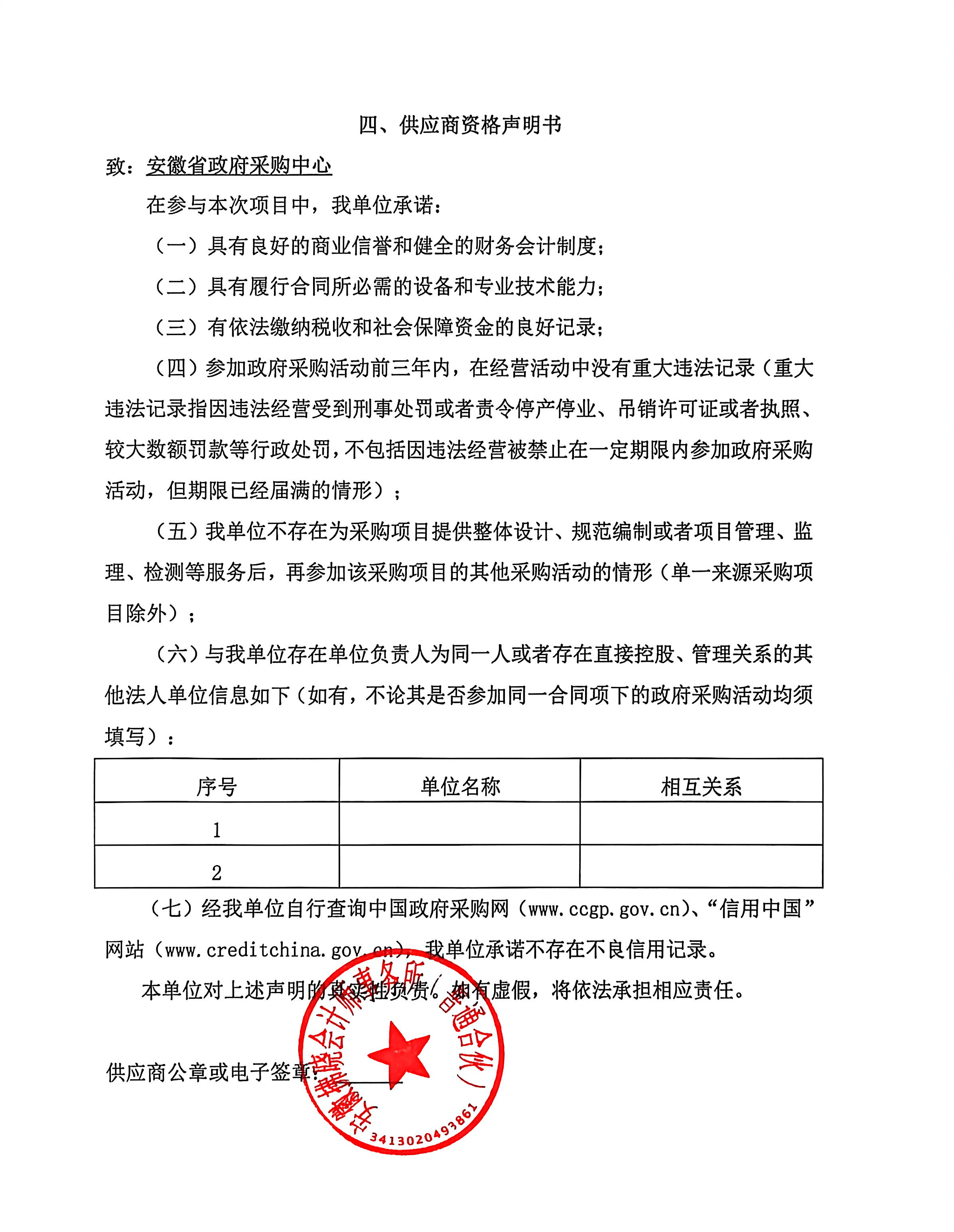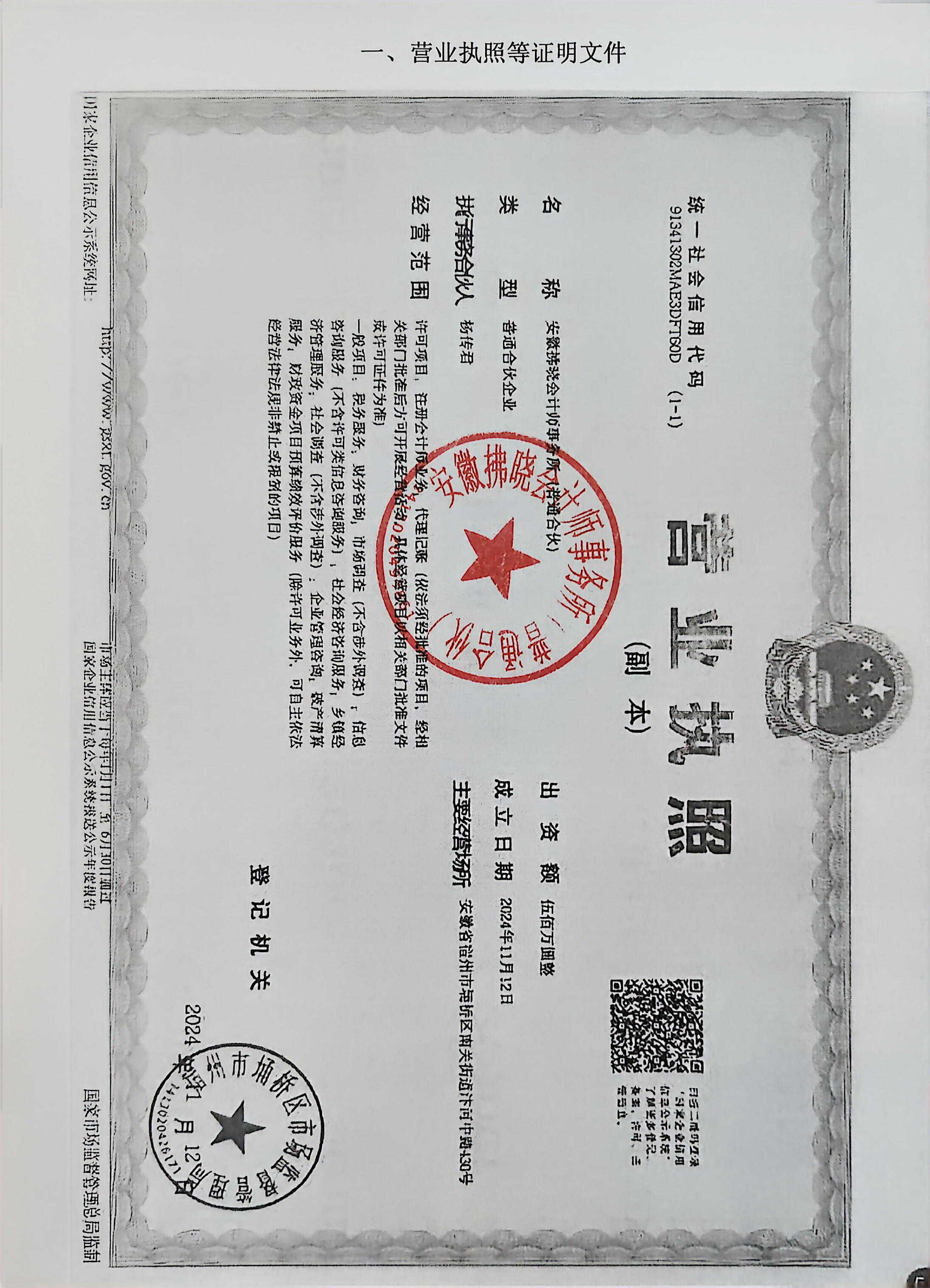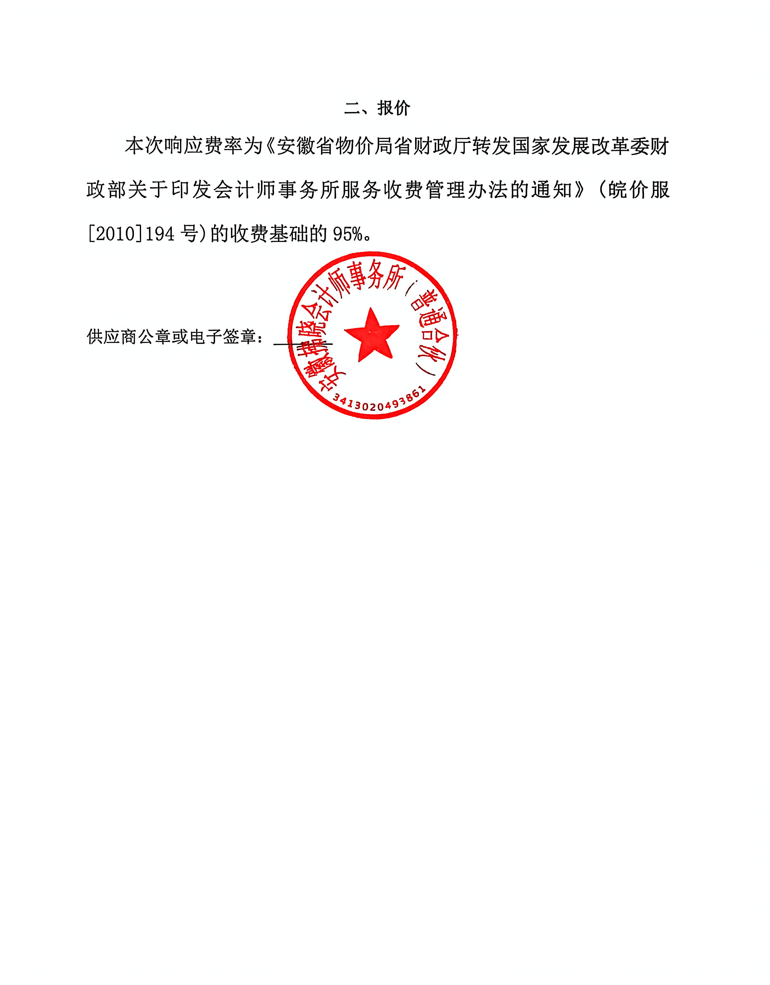 供应商名称:安徽拂晓会计师事务所(普通合伙)