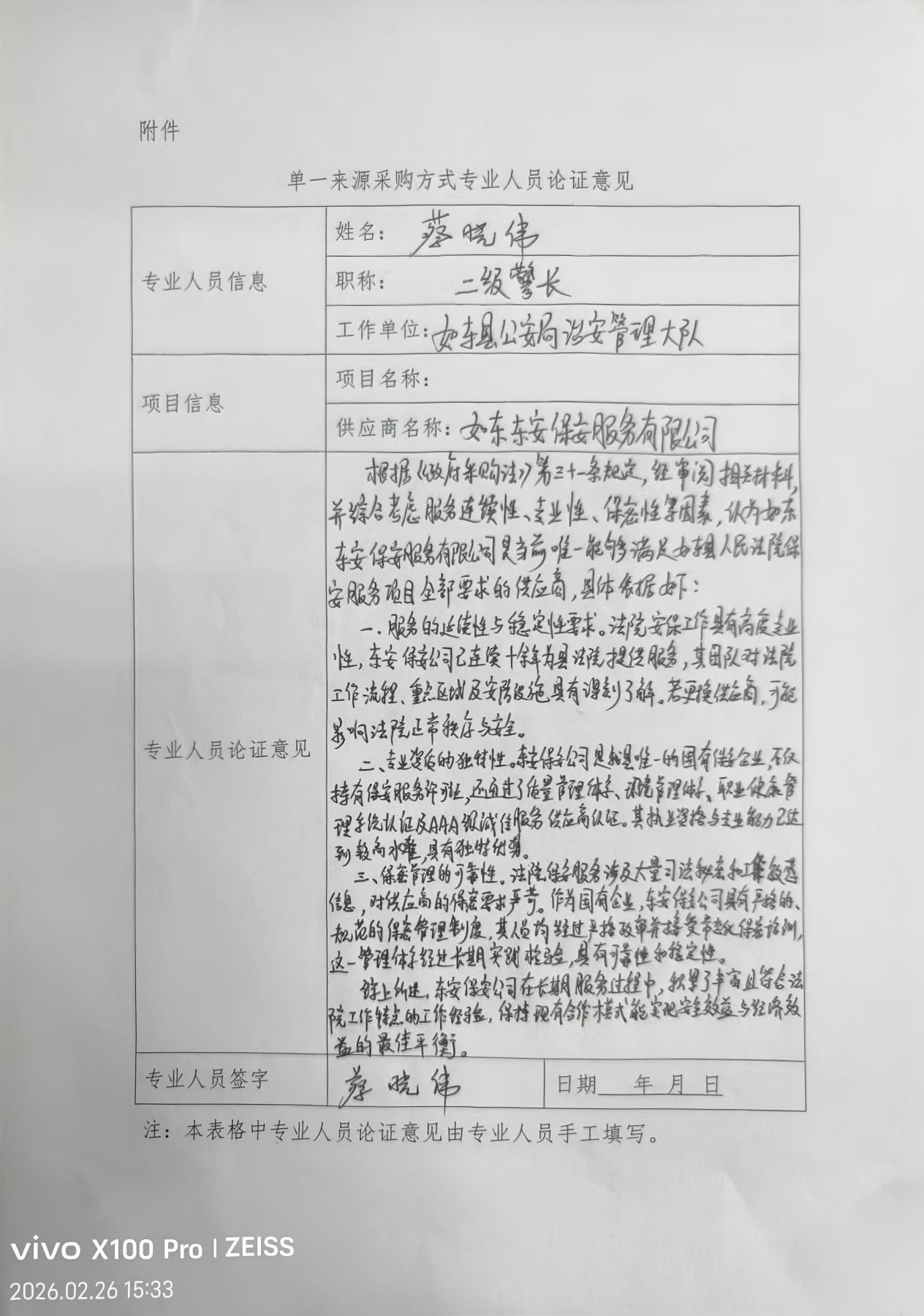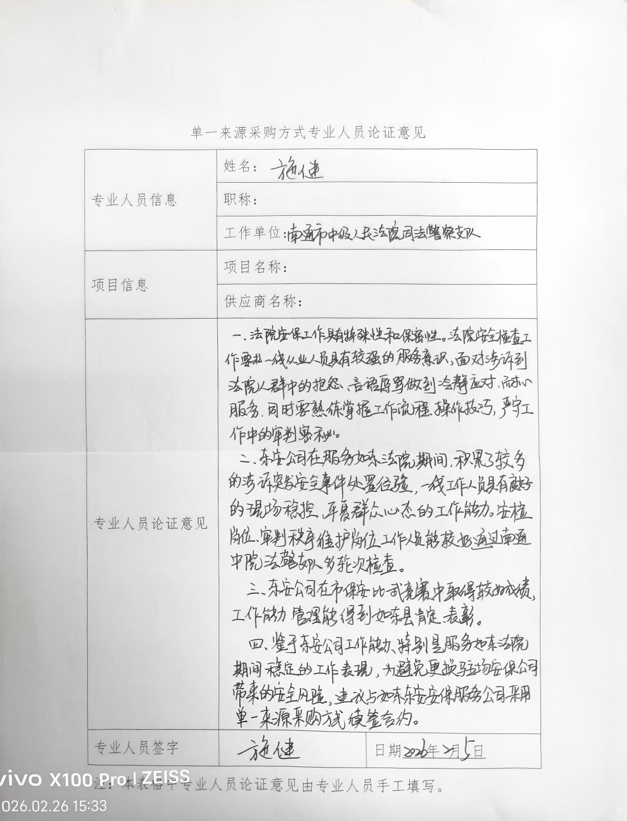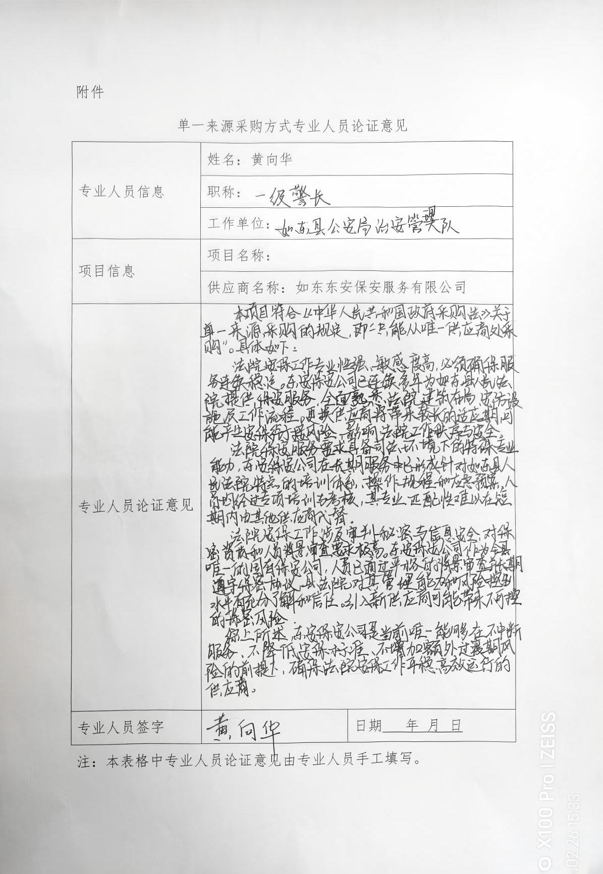 采用单一来源采购方式的原因及相关说明:法院安保工作专业性强、敏感度高,必须确保服务连续稳定,东安保安公司已连续多年为如东县人民法院提供保安服务,全面熟悉法院建筑布局,安全设施及工作流程,更换供应商将带来较长的适应期可能产生安保衔接风险,影响法院工作秩序与安全,法院保安服务要求具备司法环境下的特殊专业能力,东安保安公司在长期服务中已形成针对如东县人民法院特点的培训体系、操作流程和应急预案,人员均经过专项培训和考核,其专业匹配性难以在短期内由其他供应商代替。法院安保工作涉及审判秘密与信息安全,对保密资质和人员背景审查要求极高,东安保安公司作为全县唯一的国有保安公司,人员已通过严格的背景审查并长期遵守保密协议,县法院对其管理能力和风险控制水平有充分了解和信任,引入新供应商可能带来不可控的保密风险。综上所述,为保证法院安保工作的安全性、稳定性、连续性,拟跟如东东安保安服务有限公司的保安服务采购采用单一来源采购方式。