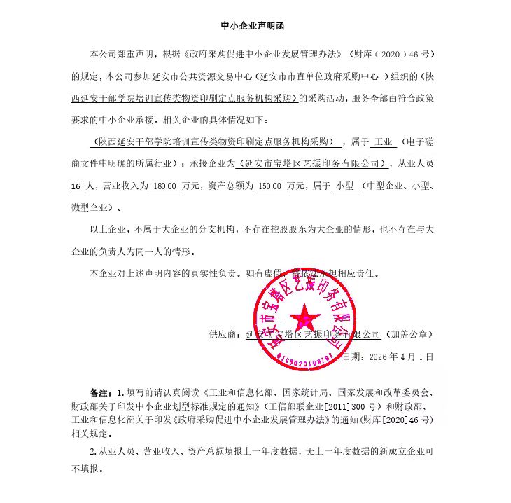 陕西延安干部学院培训宣传类物资印刷定点服务机构采购中标(成交)结果公告