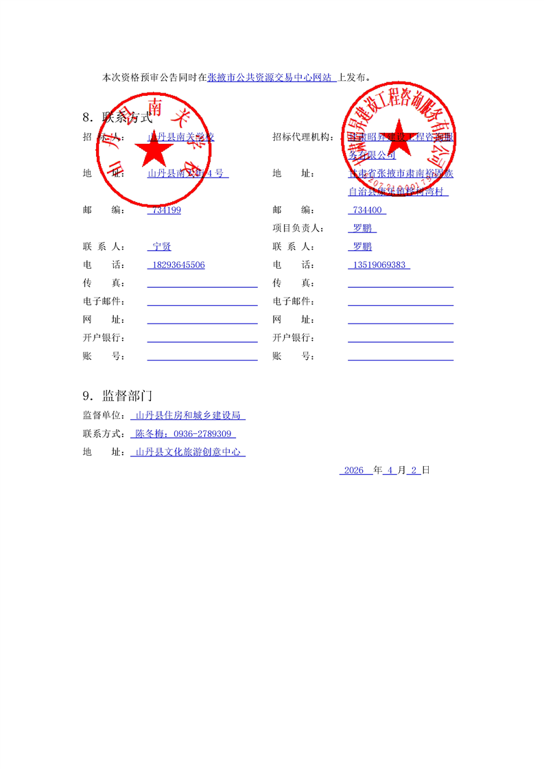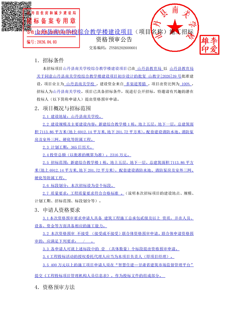 山丹县南关学校综合教学楼建设项目[招标/资审公告]