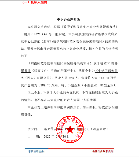 渭南师范学院朝阳校区安保服务采购项目采购结果公告[中标公告]