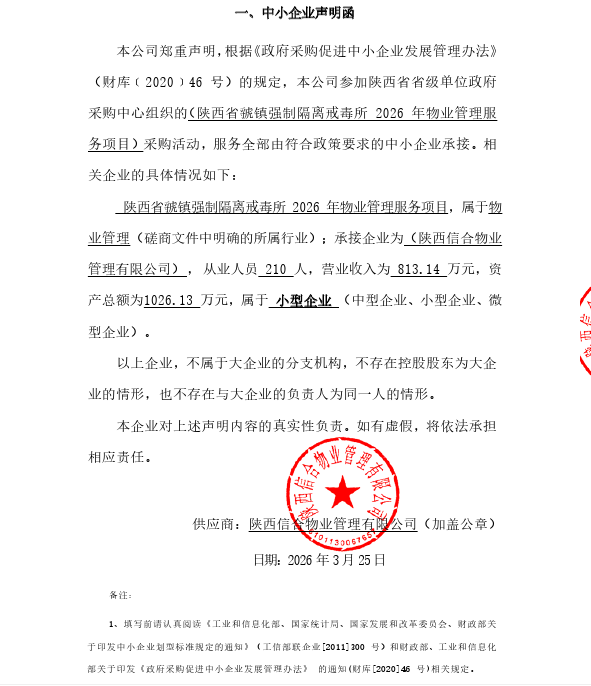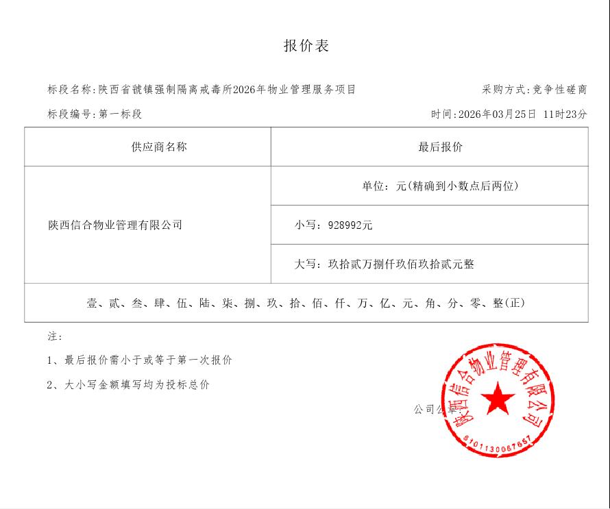 陕西省虢镇强制隔离戒毒所2026年物业管理服务项目采购结果公告[中标公告]