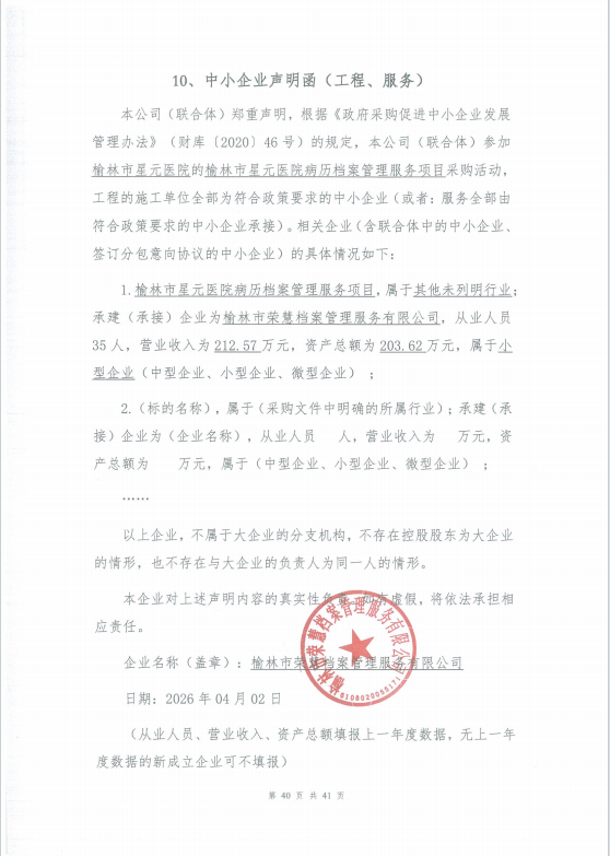 合同包*(榆林市星元医院病历档案管理服务项目):