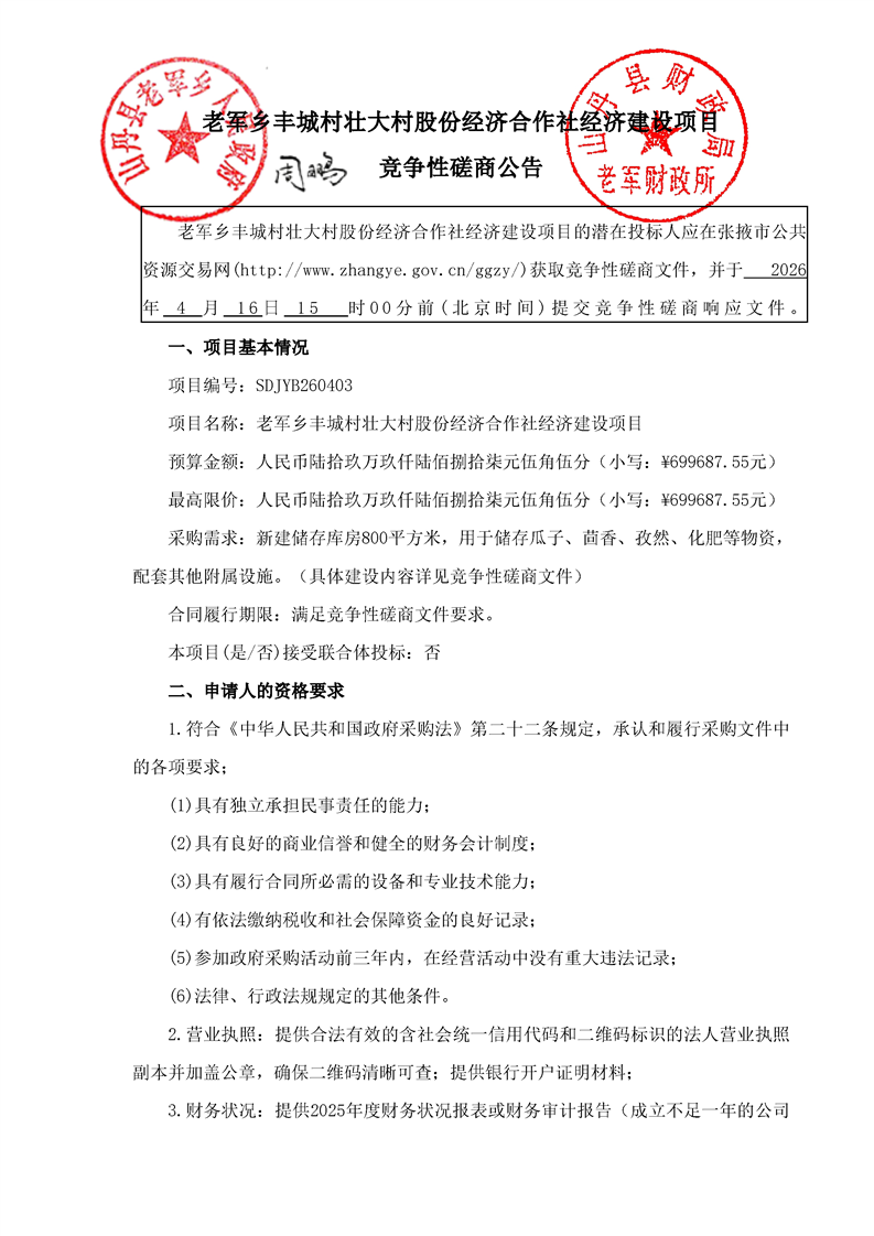 老军乡丰城村壮大村股份经济合作社经济建设项目[采购/资审公告]