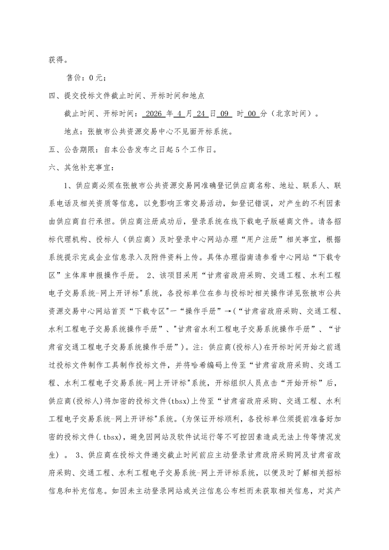 甘肃/张掖 招标采购