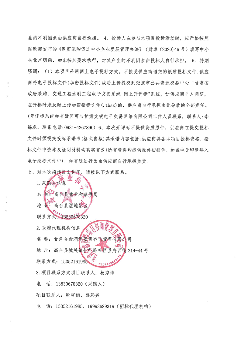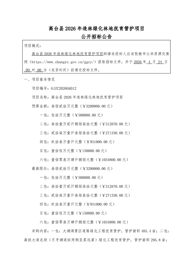 高台县2026年造林绿化林地抚育管护项目公开招标公告[采购/资审公告]