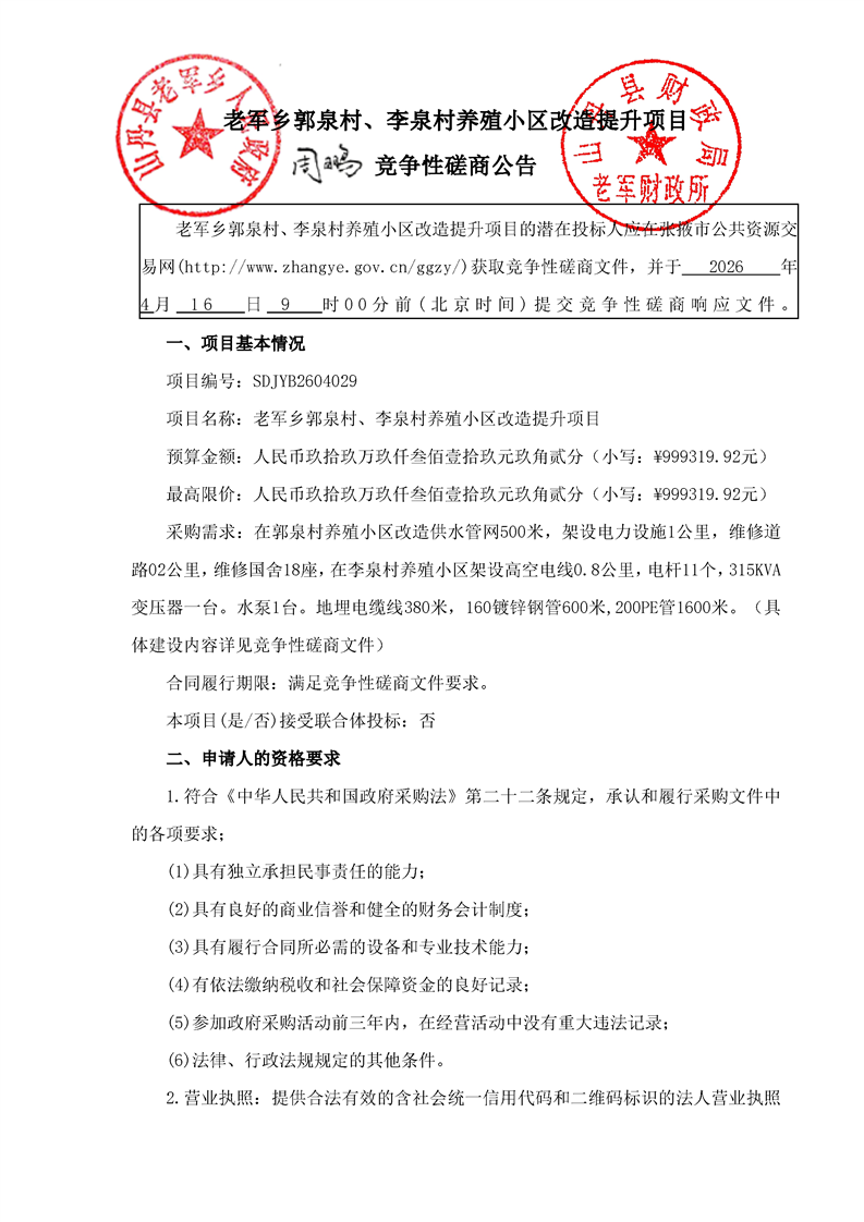 老军乡郭泉村、李泉村养殖小区改造提升项目{type}