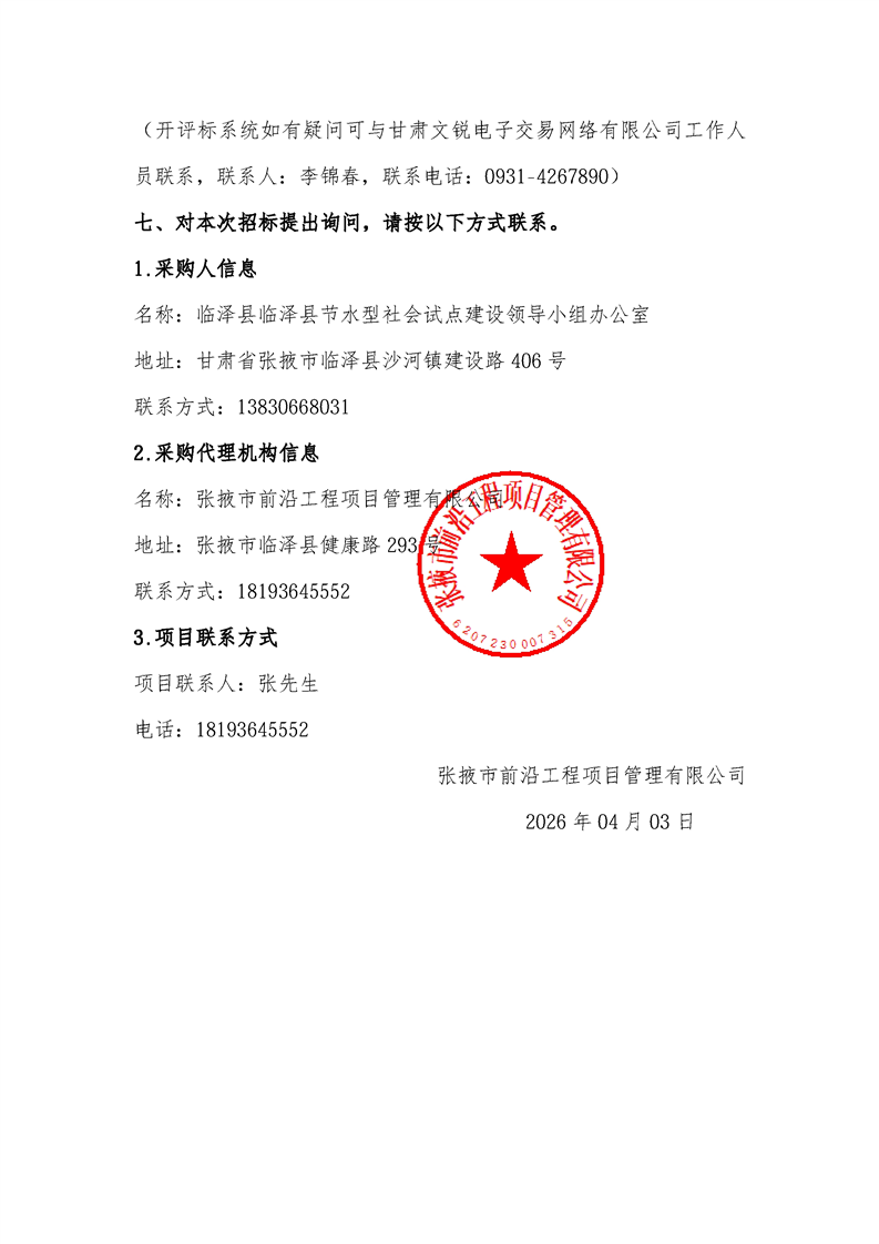 交易平台:张掖市公共资源交易中心临泽县分中心招标/采购项目编号:********************投标登记截止时间:********** **:**:**