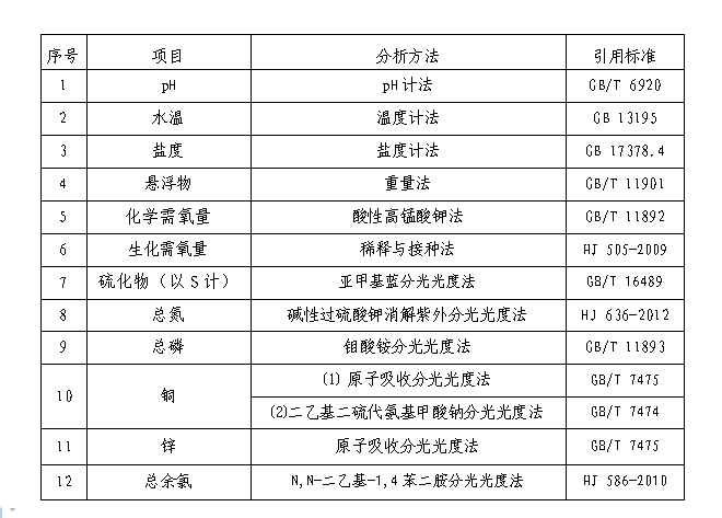 备注:有多种测定方法的指标,在测定结果出现争议时,以方法(*)的测定为仲裁结果。