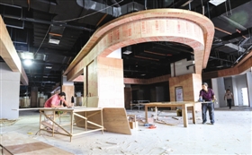 记者**月**日在位于石狮轻纺城*号楼的东南亚采购集散中心场馆装修施工现场看到,装修人员正忙于对一层、二层场馆加紧施工。据悉,目前,东南亚采购集散中心一、二层场馆装修完成**%,将于**月底投入运营。