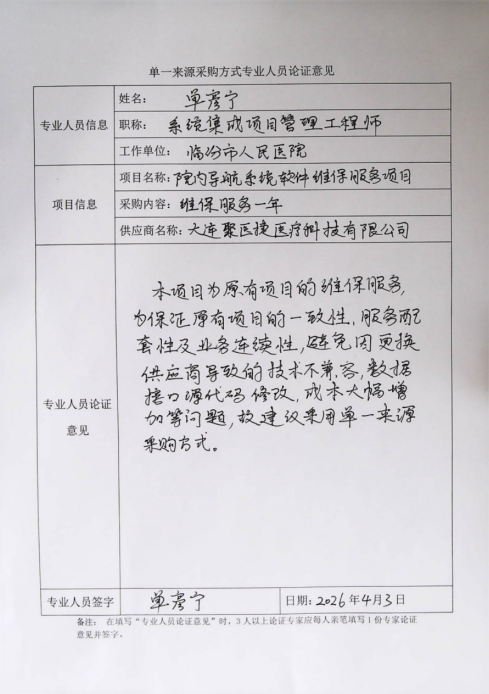 临汾市人民医院院内导航系统软件维保服务项目单一来源公示