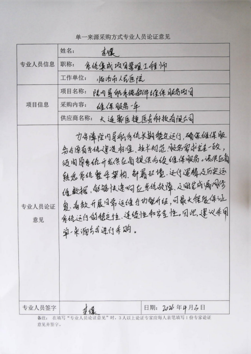 *、采用单一来源采购方式的原因及说明:医院院内导航系统由原维保供应商开发及建设,掌握该系统核心算法、数据接口及运维权限,该维保供应商熟悉系统架构、运行逻辑及运维数据,能够快速响应、高效运维及功能升级,更换维保供应商易出现系统不兼容、数据无法对接等问题,为保证系统服务的连续性、稳定性及安全性,实施单一来源采购。