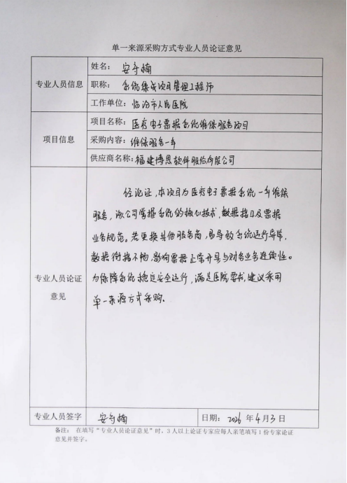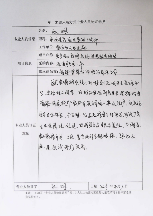 临汾市人民医院医疗电子票据系统维保服务项目单一来源公示