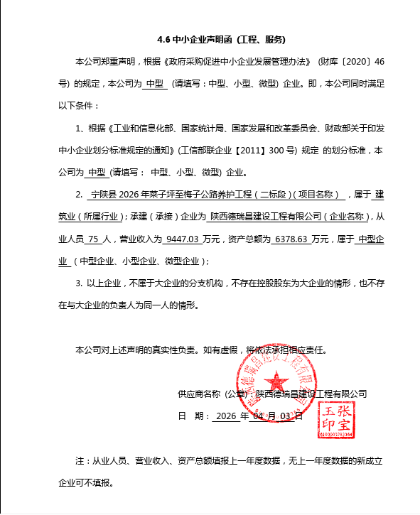 宁陕县2026年菜子坪至梅子公路养护工程中标(成交)结果公告