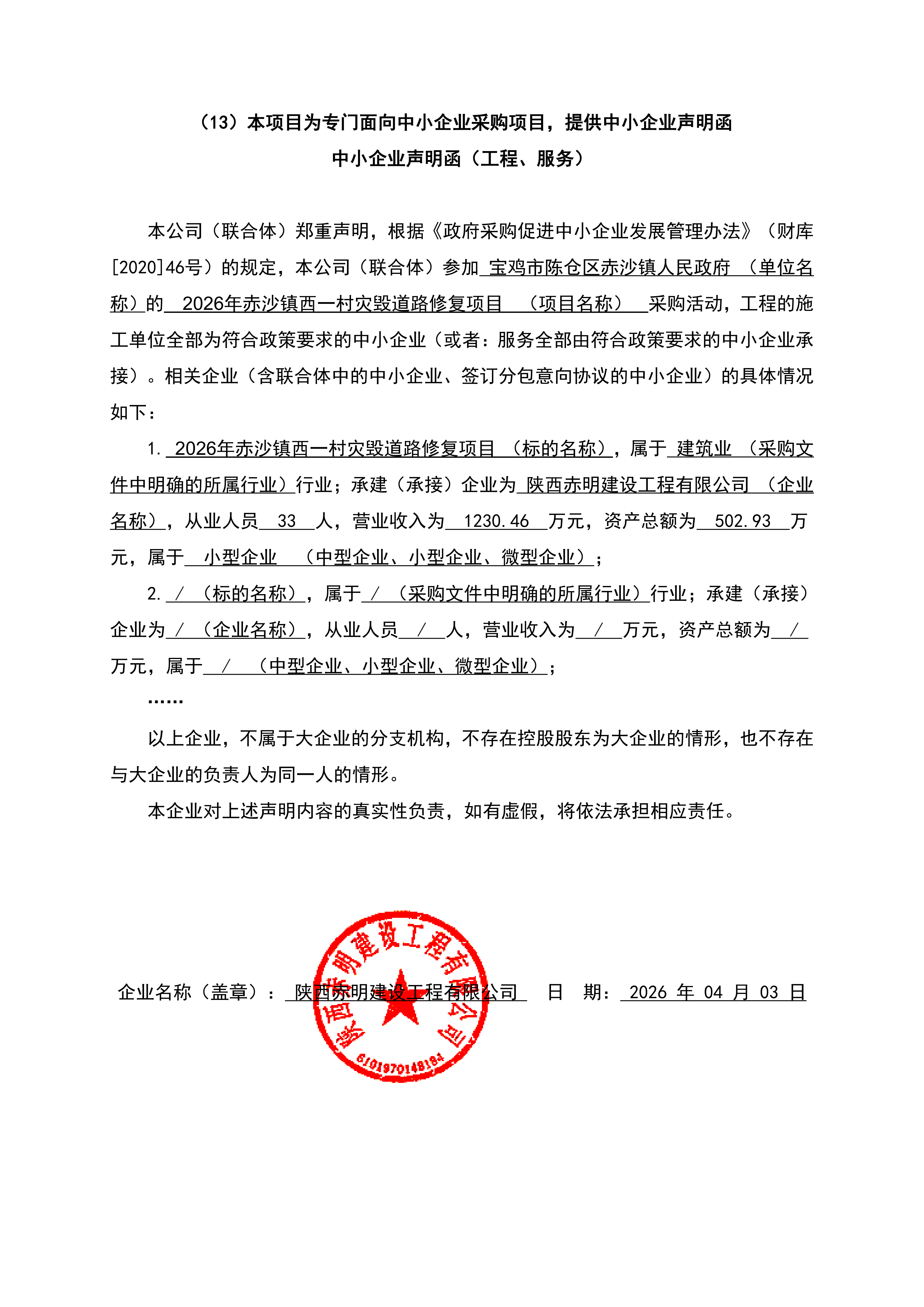 2026年赤沙镇西一村灾毁道路修复项目结果更正公告