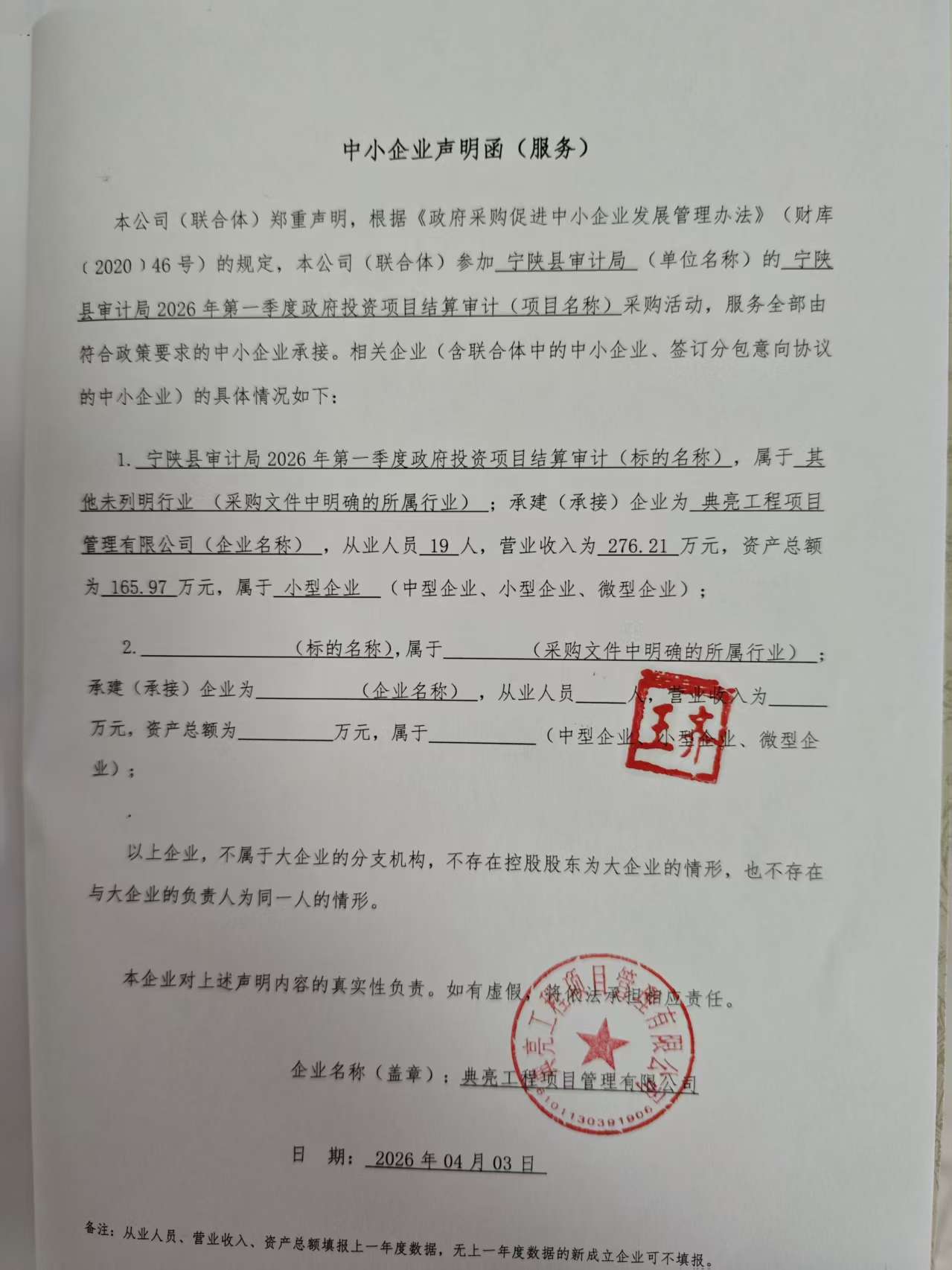 宁陕县审计局2026年第一季度政府投资项目结算审计中标(成交)结果公告