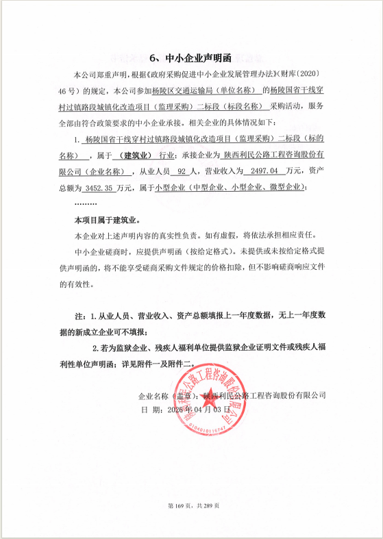 | * | 工程监理服务 | 杨陵国省干线穿村过镇路段城镇化改造项目监理(二标段) | 满足磋商文件要求 | 满足磋商文件要求 | 自合同签订之日起***日历天;根据项目施工实际情况进行,直至项目竣工验收完毕为止。 | 合格 | ***,***.** |