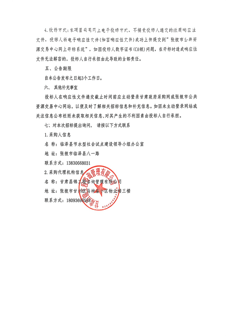 交易平台:张掖市公共资源交易中心临泽县分中心招标/采购项目编号:********************投标登记截止时间:********** **:**:**