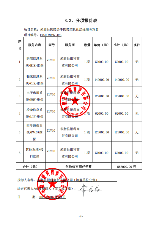 米脂县医院关于医院信息化运维服务项目成交结果公告