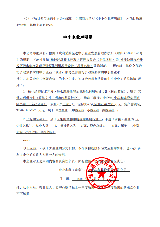 榆佳经济技术开发区污水深度处理及资源化利用项目设计中标(成交)结果公告