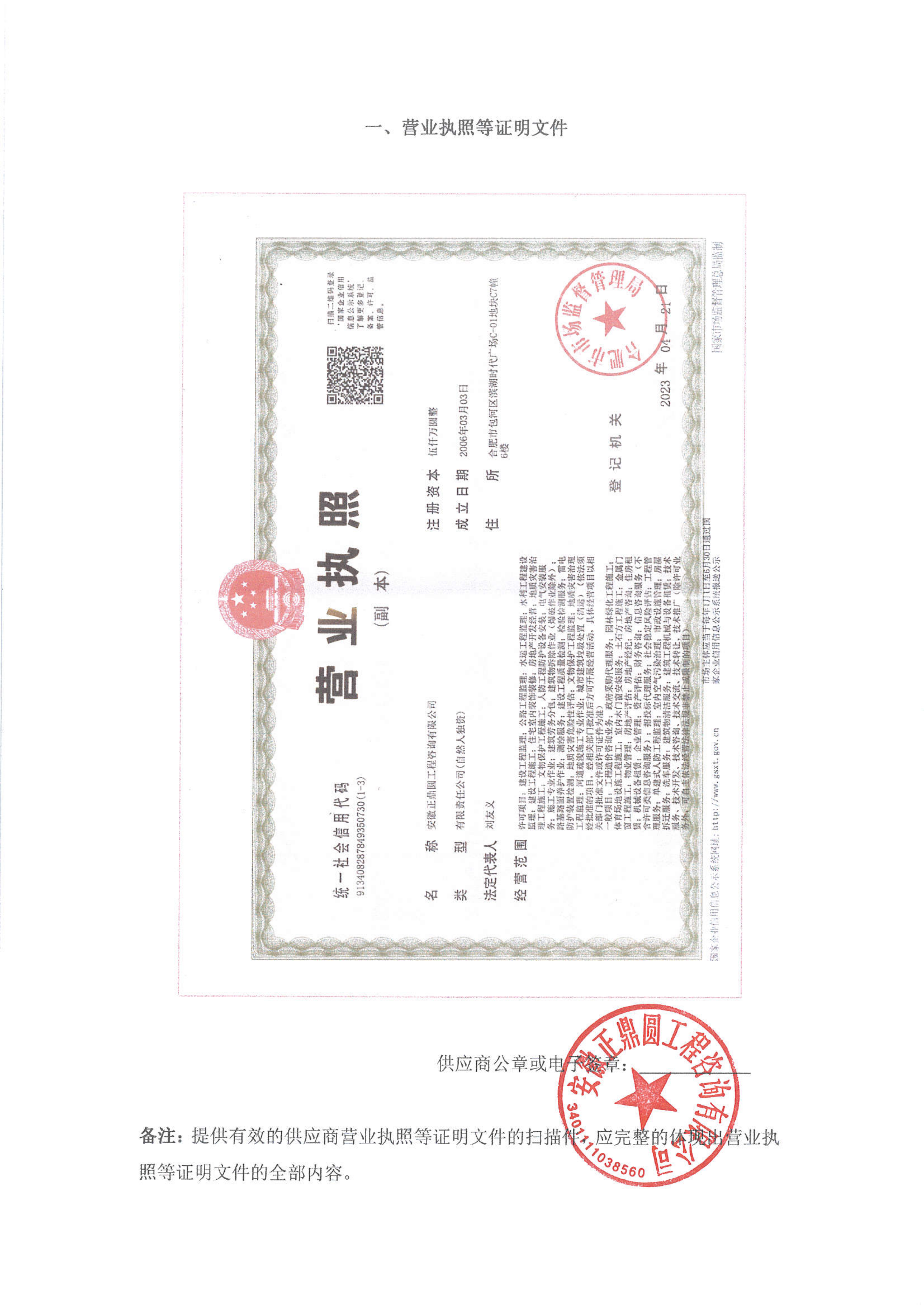 供应商名称:安徽正鼎圆工程咨询有限公司