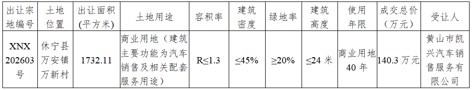 【中标公示】休宁县国有建设用地使用权成交结果公示(HJAGT2026P004)【市本级】【公告中】