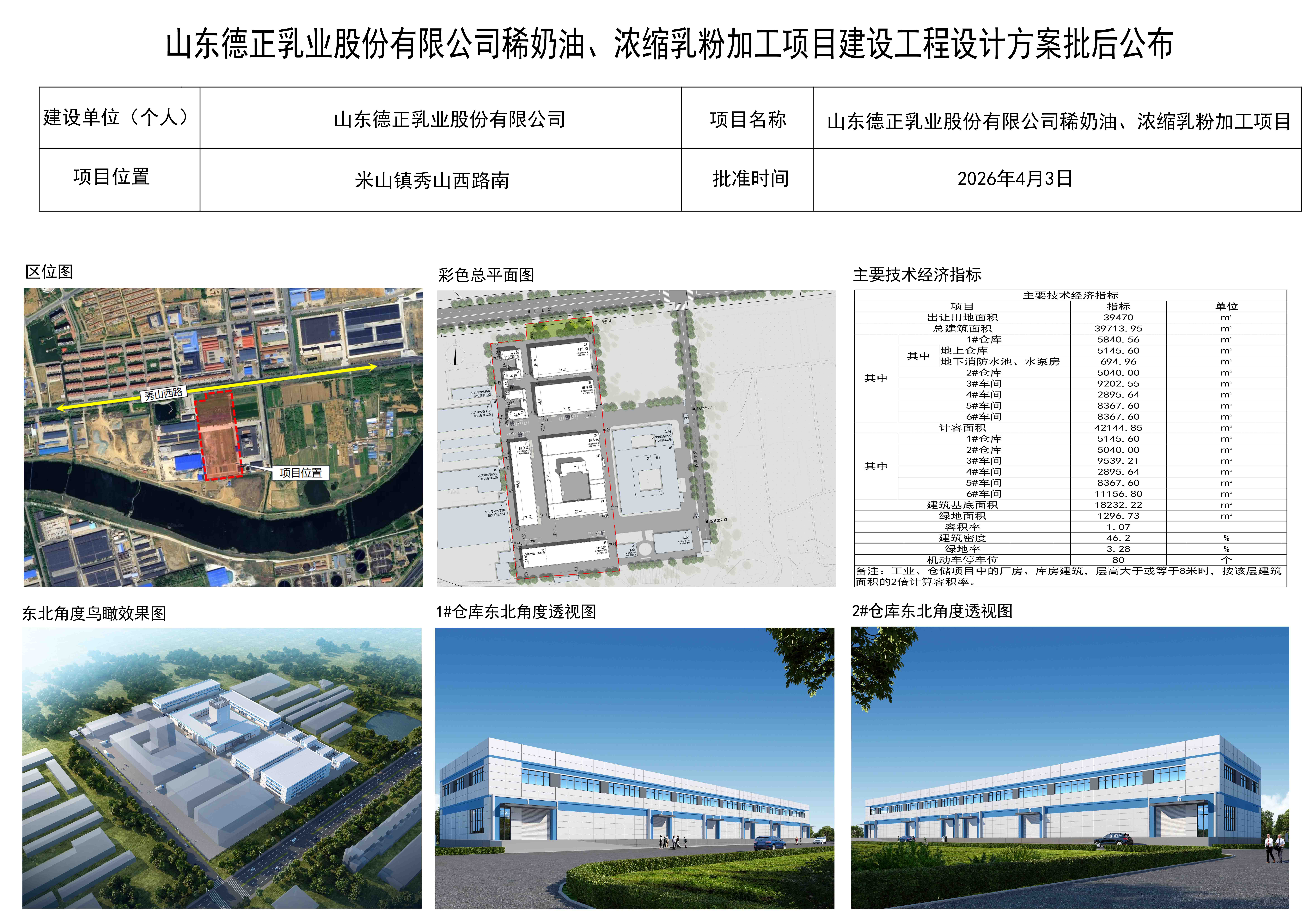 、浓缩乳粉加工项目建设工程设计方案批后公布