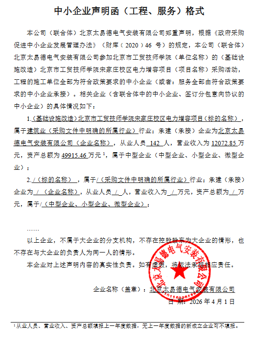 中标成交供应商名称:北京太易德电气安装有限公司