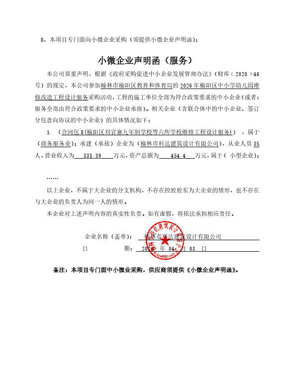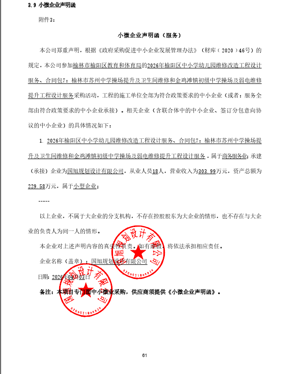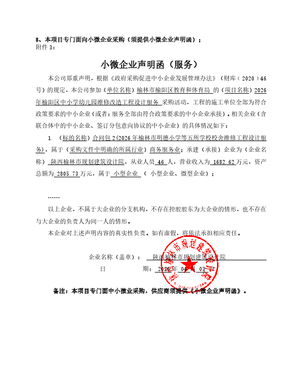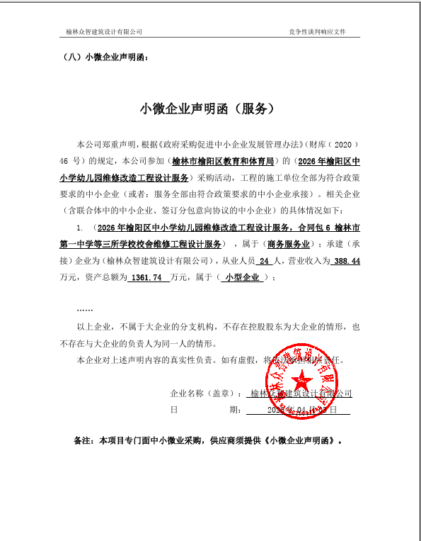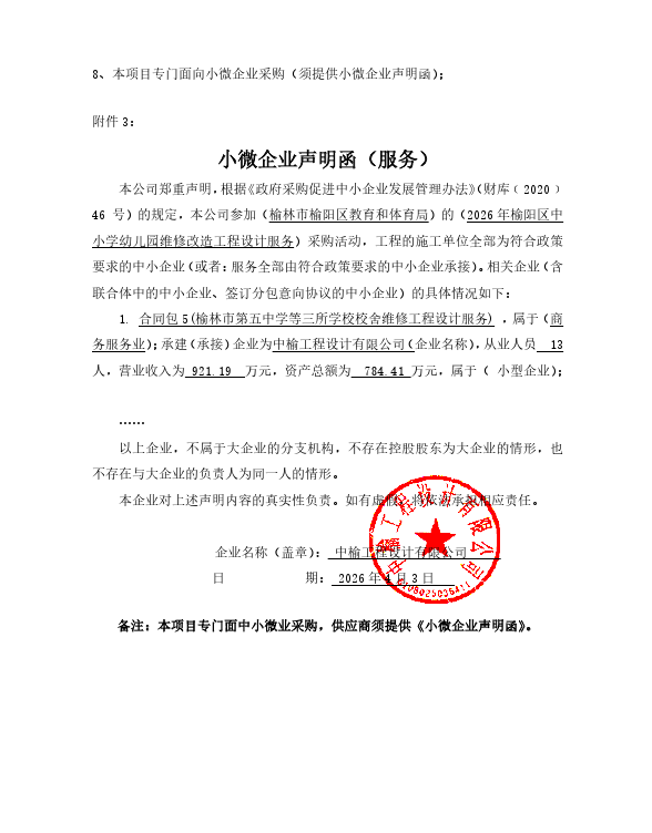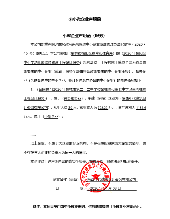 2026年榆阳区中小学幼儿园维修改造工程设计服务中标(成交)结果公告