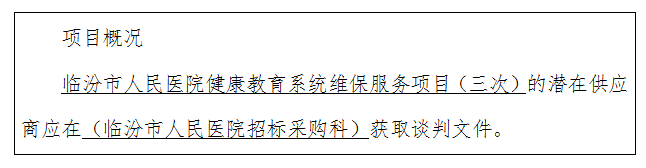临汾市人民医院健康教育系统维保服务项目(三次)竞争性谈判公告